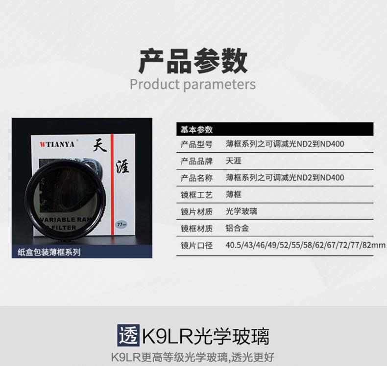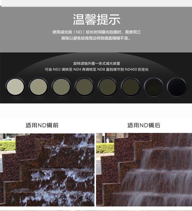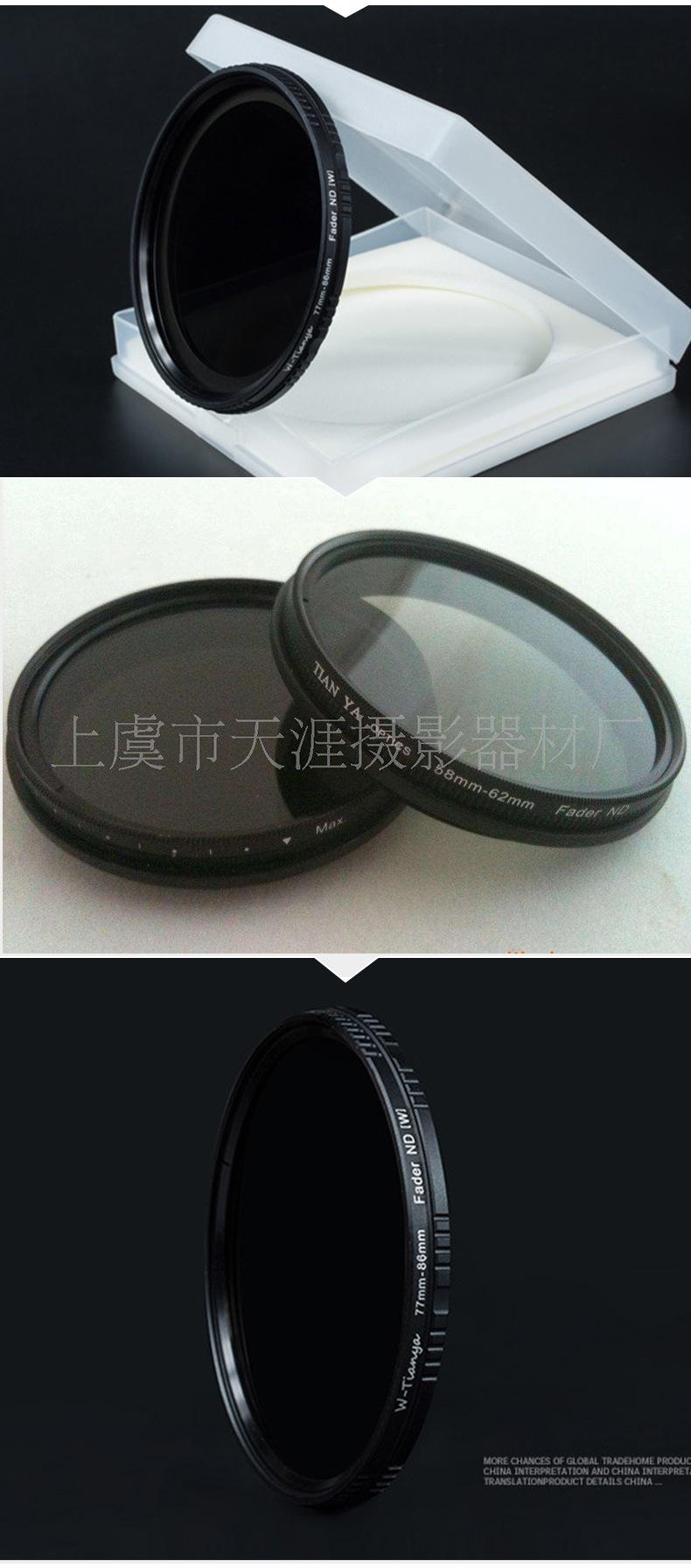 Espejo ND Ajustable Tianya 1 a 9 Pasos Reducción de Luz Espejo 77 40.52 58 67 82mm Espejo de Densidad Gris Medio ND2-400