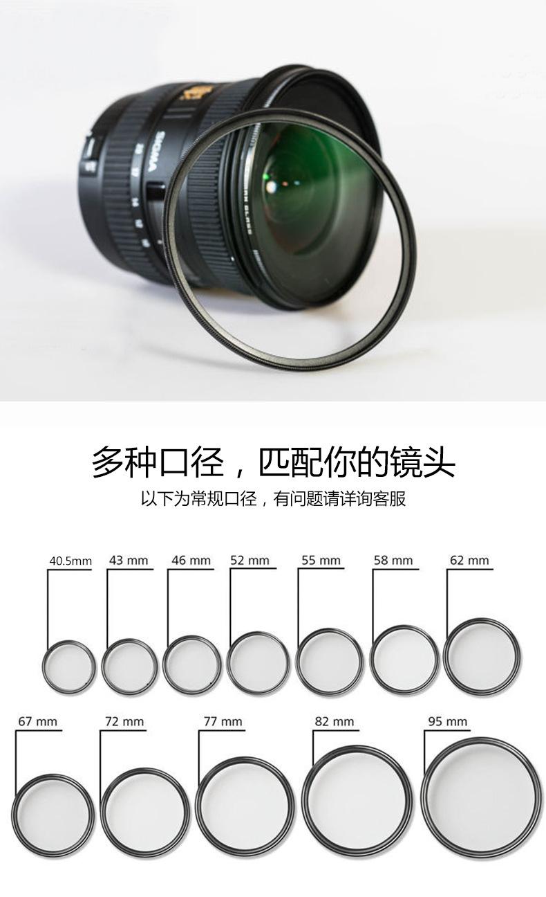 30mm, 37mm, 40.5mm, 43mm, 46mm, 49mm, 52mm, 55mm, 58mm, 62mm, 67mm, 72mm, 77mm, 82mm