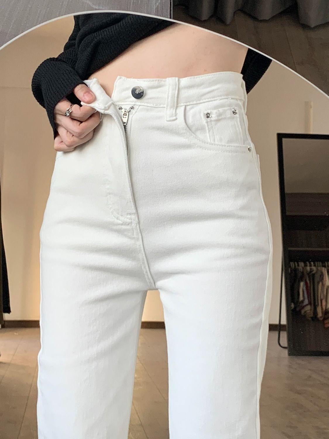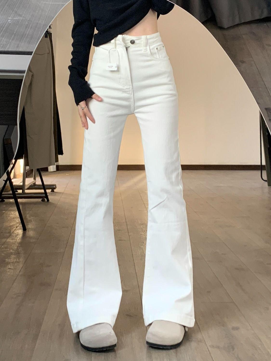 Jeans Acampanados Spice Girl Blancos para Mujer 2024 Nuevo Invierno Cintura Alta Elásticos Slim Ajustados Pantalones Herradura
