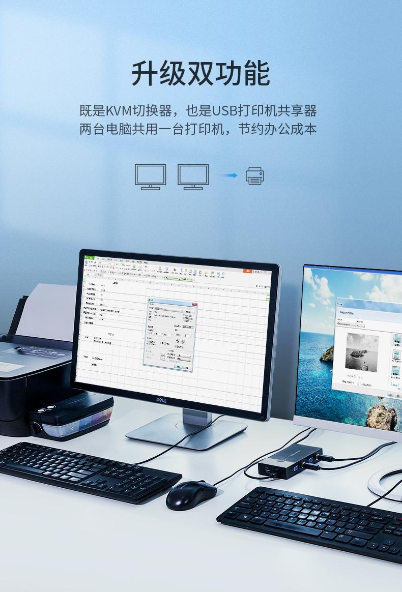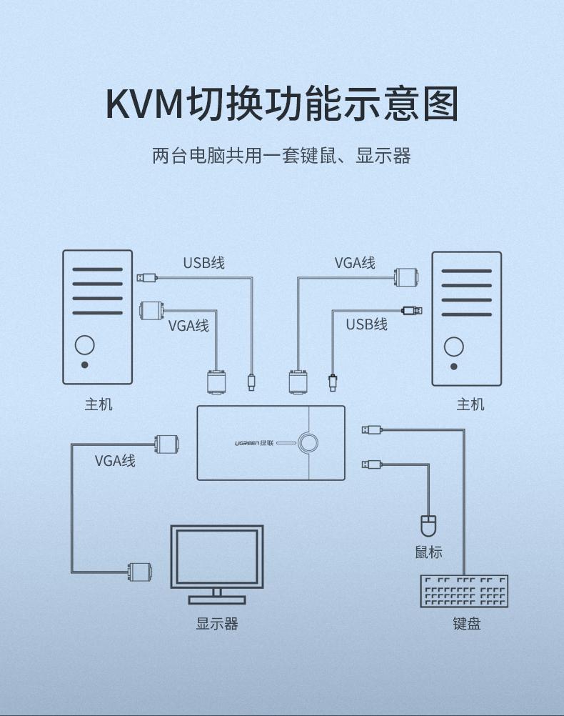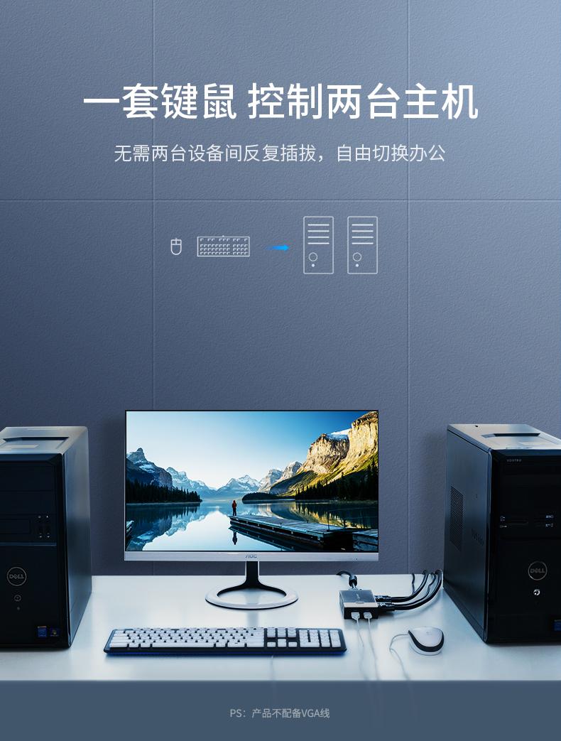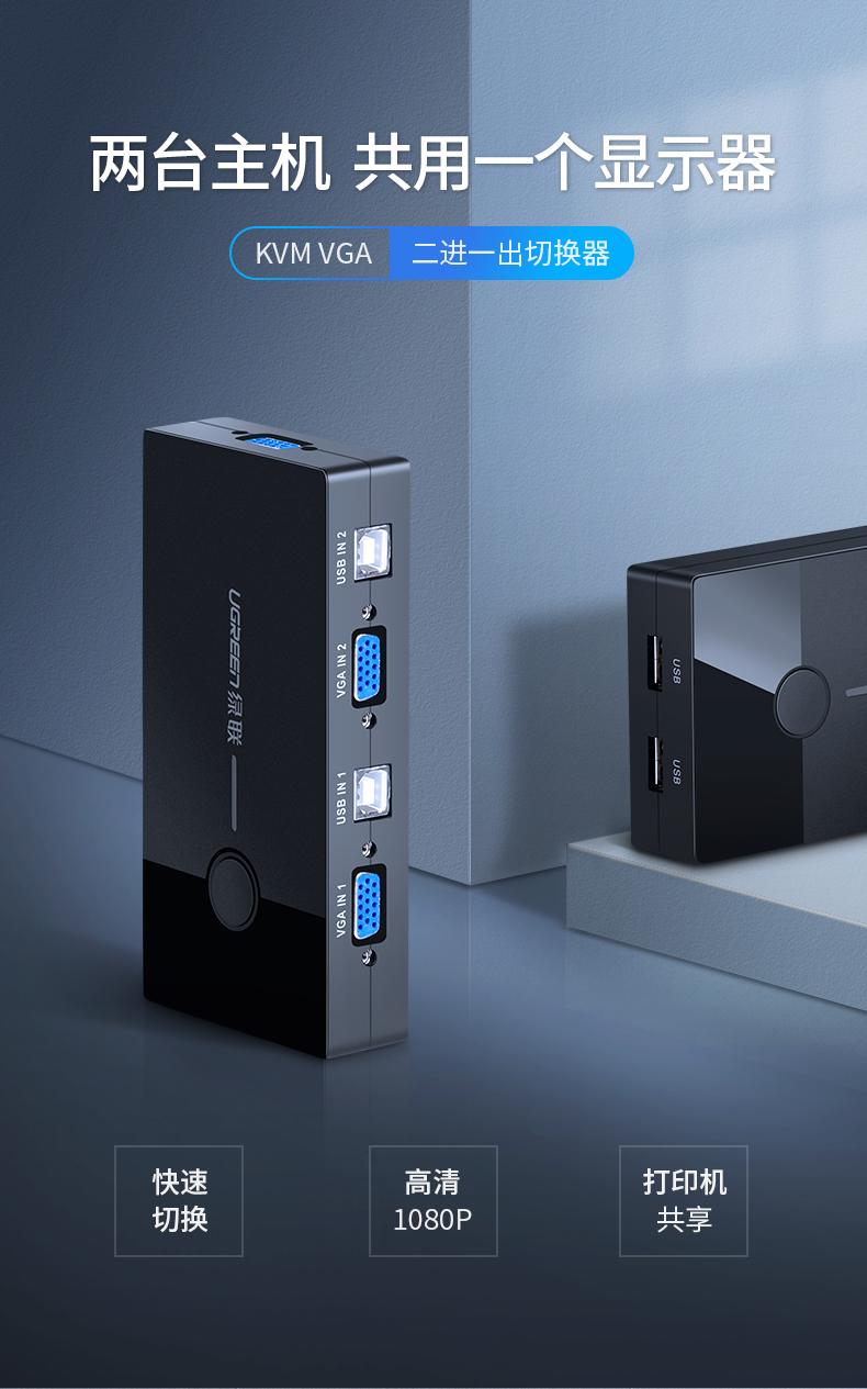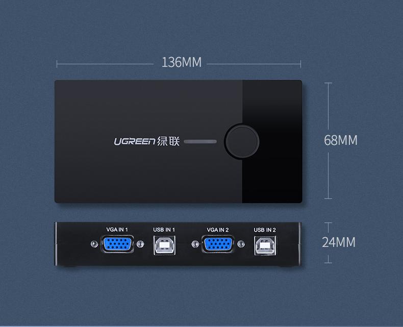 Qyy Conmutador KVM VGA Video Corte de Pantalla Dos en Uno Salida Dos Computadoras Compartiendo Teclado y Ratón Monitor