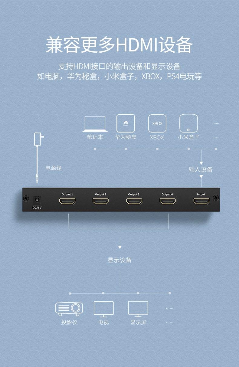 Divisor HDMI Divisor Uno-A-Dos 1 entrada 2 salidas Video 4K Proyector con Audio Hd Uno-A-Dos
