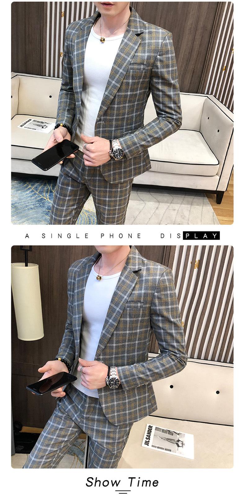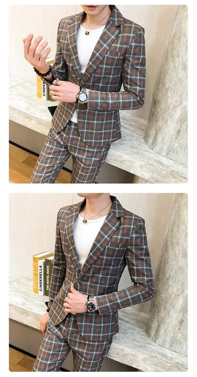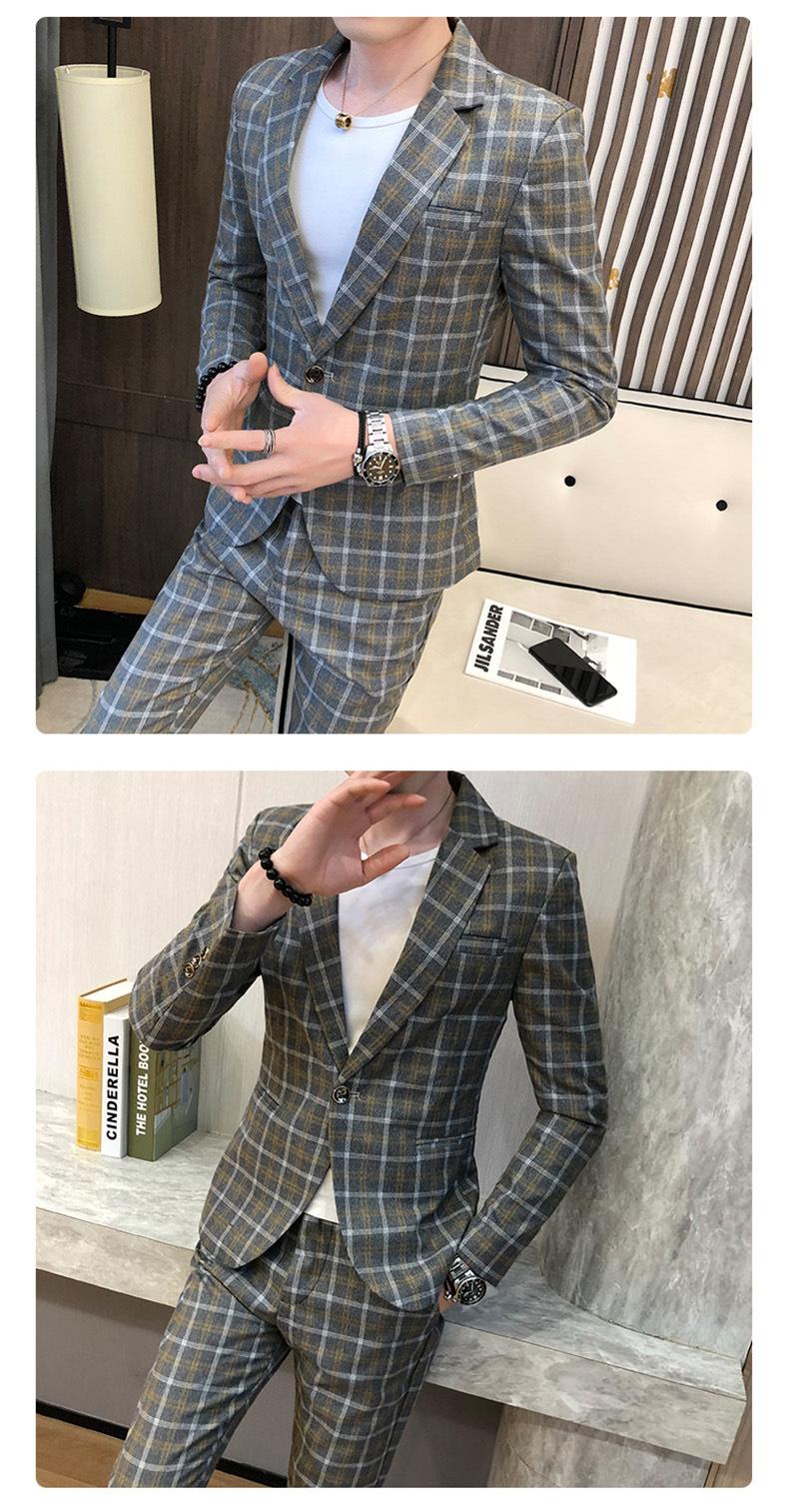 Conjunto de Traje Primavera y Otoño Coreano Ajustado Guapo Chaqueta de Traje Estilista Casual Moderno Conjunto de Traje Pequeño para Hombre