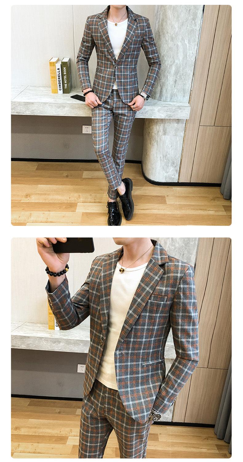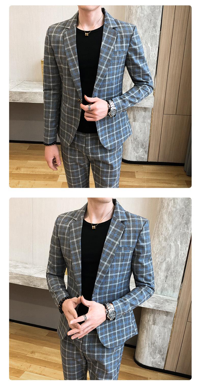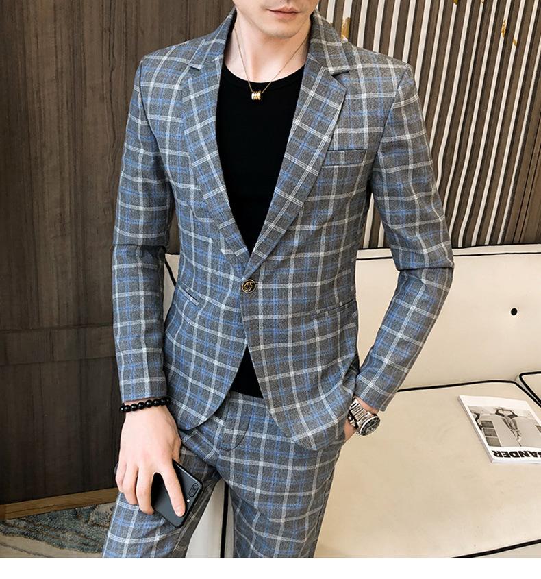 Conjunto de Traje Primavera y Otoño Coreano Ajustado Guapo Chaqueta de Traje Estilista Casual Moderno Conjunto de Traje Pequeño para Hombre