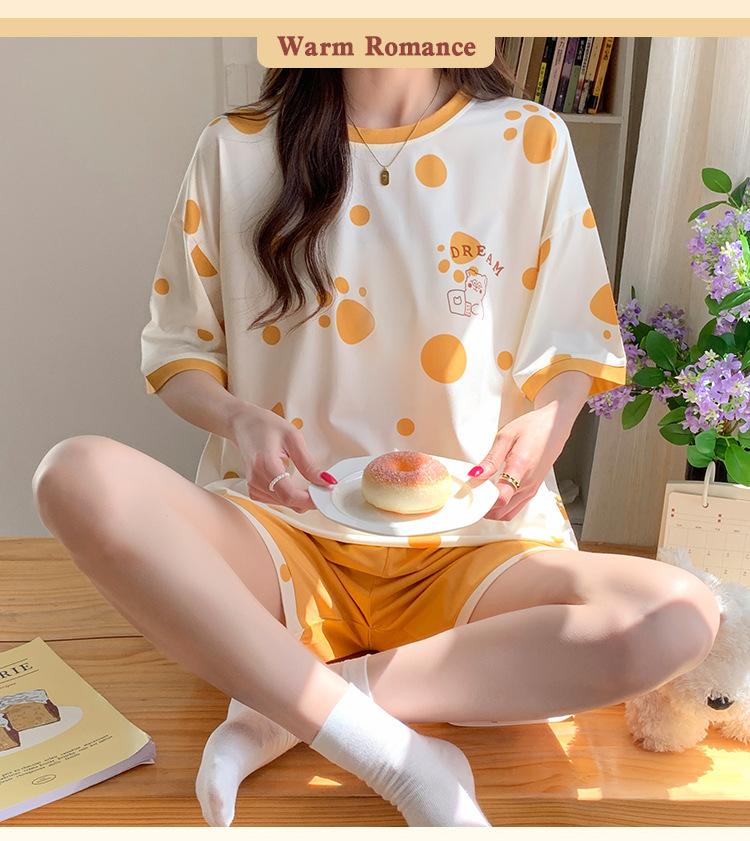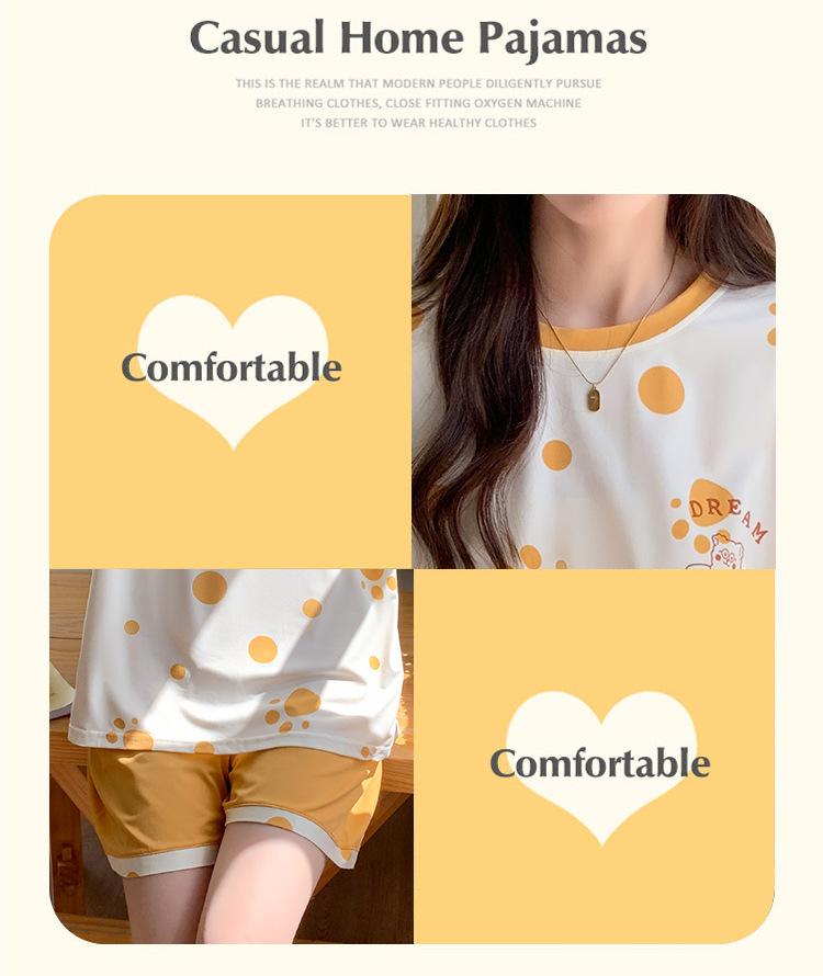 Compra Pijamas para Mujer Verano Algodón Imitación Manga Corta Shorts Delgados 2025 Nuevo Dulce y Lindo Dibujo Animado Traje de Casa de Verano al por mayor en Joom.pro