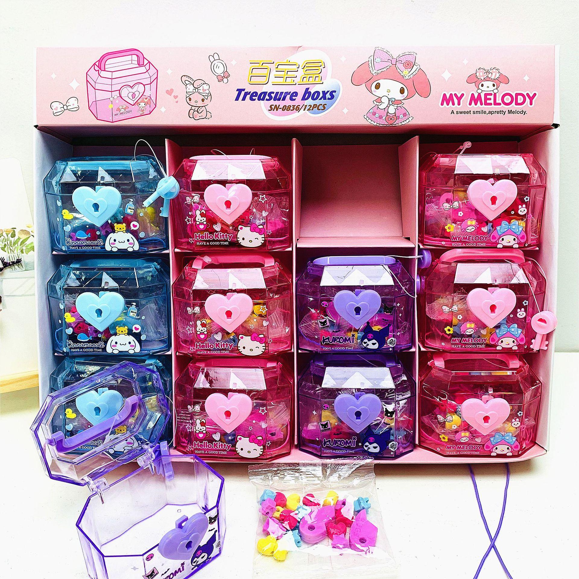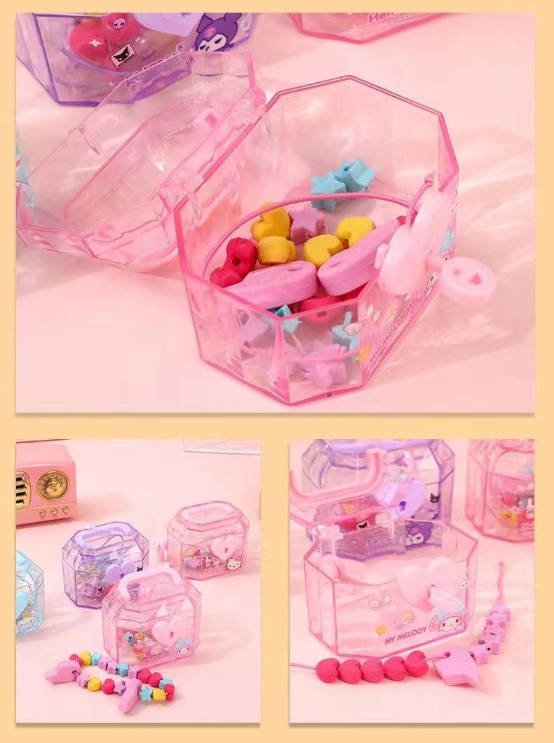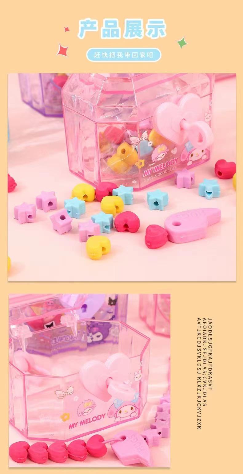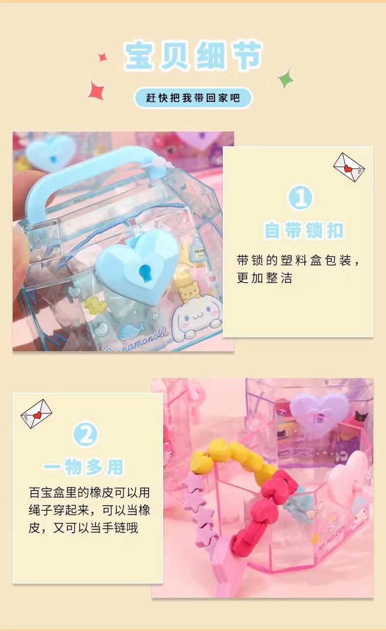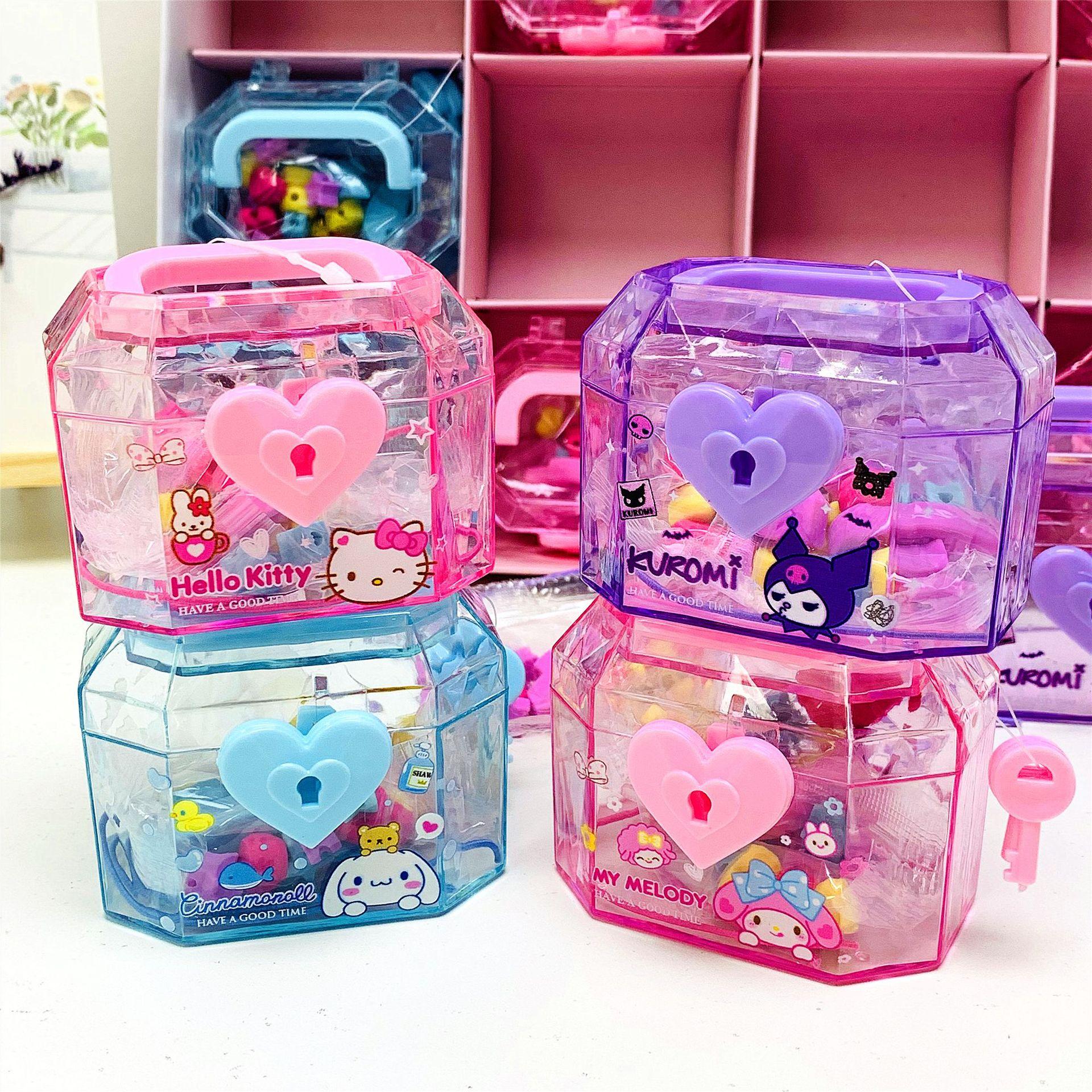 Caja de Almacenamiento Sanrio de Dibujos Animados Creativa con Cerradura Caja de Tesoro Borrador Divertido DIY Mini Pulsera de Plastilina