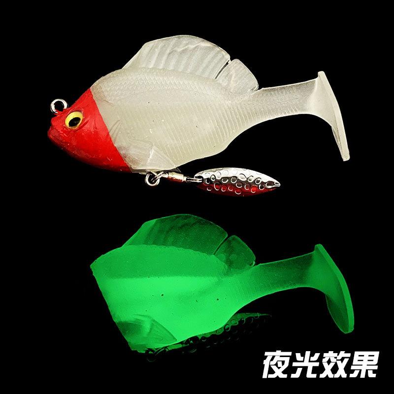 Señuelo Biónico de Pez Plomado Suave Hueco con Lentejuelas Giratorias, Pez Saltador Mejorado con Cola en T para Pez Mandarín y Lubina