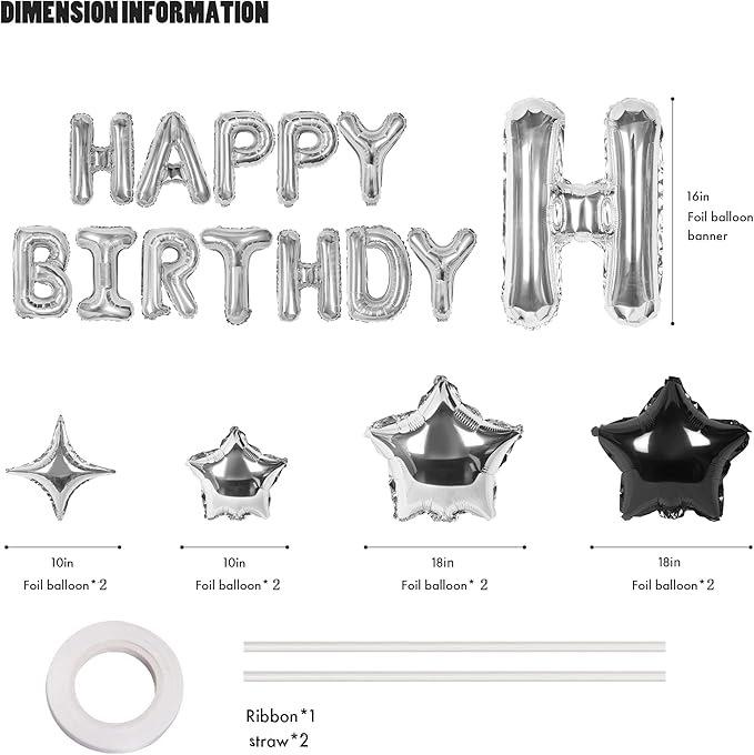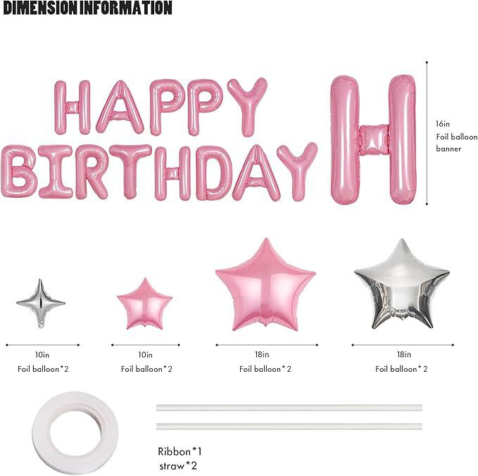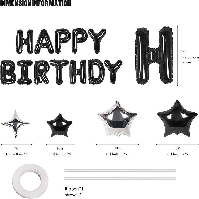 7pcs golden birthday letter set, 7pcs silver birthday letter set, 7pcs black birthday letter set, 7pcs pink bi...