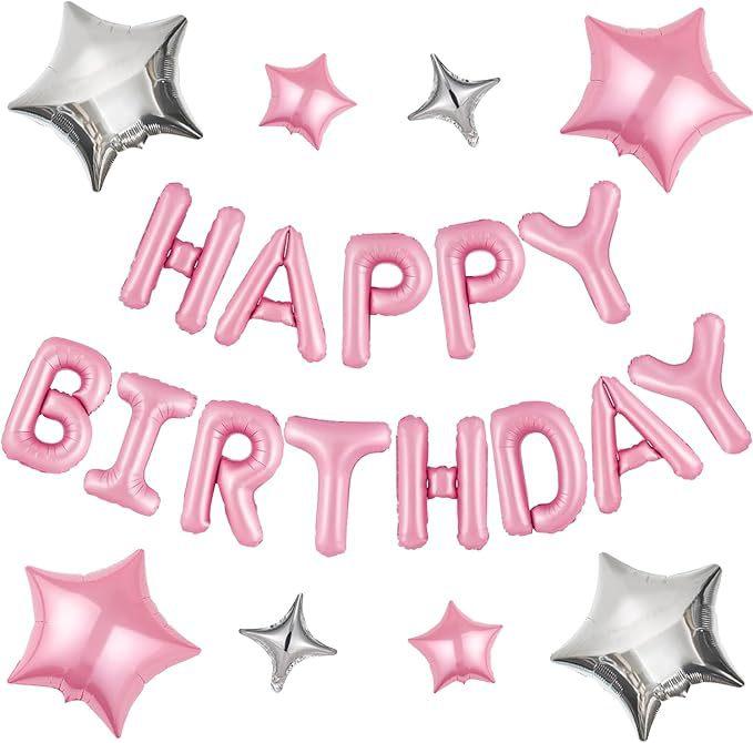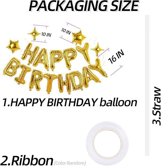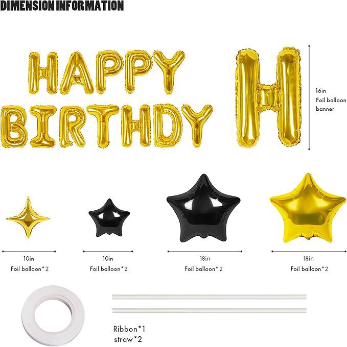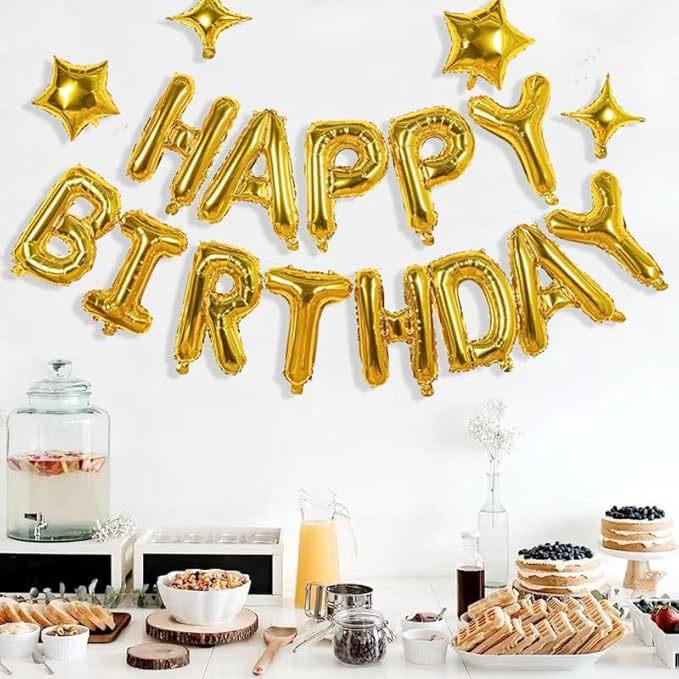 Dorado Feliz Cumpleaños Letra Inglesa Película de Aluminio Globo Traje Estrella Cruz de Cinco Puntas Decoración para Fiesta de Cumpleaños Infantil