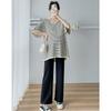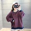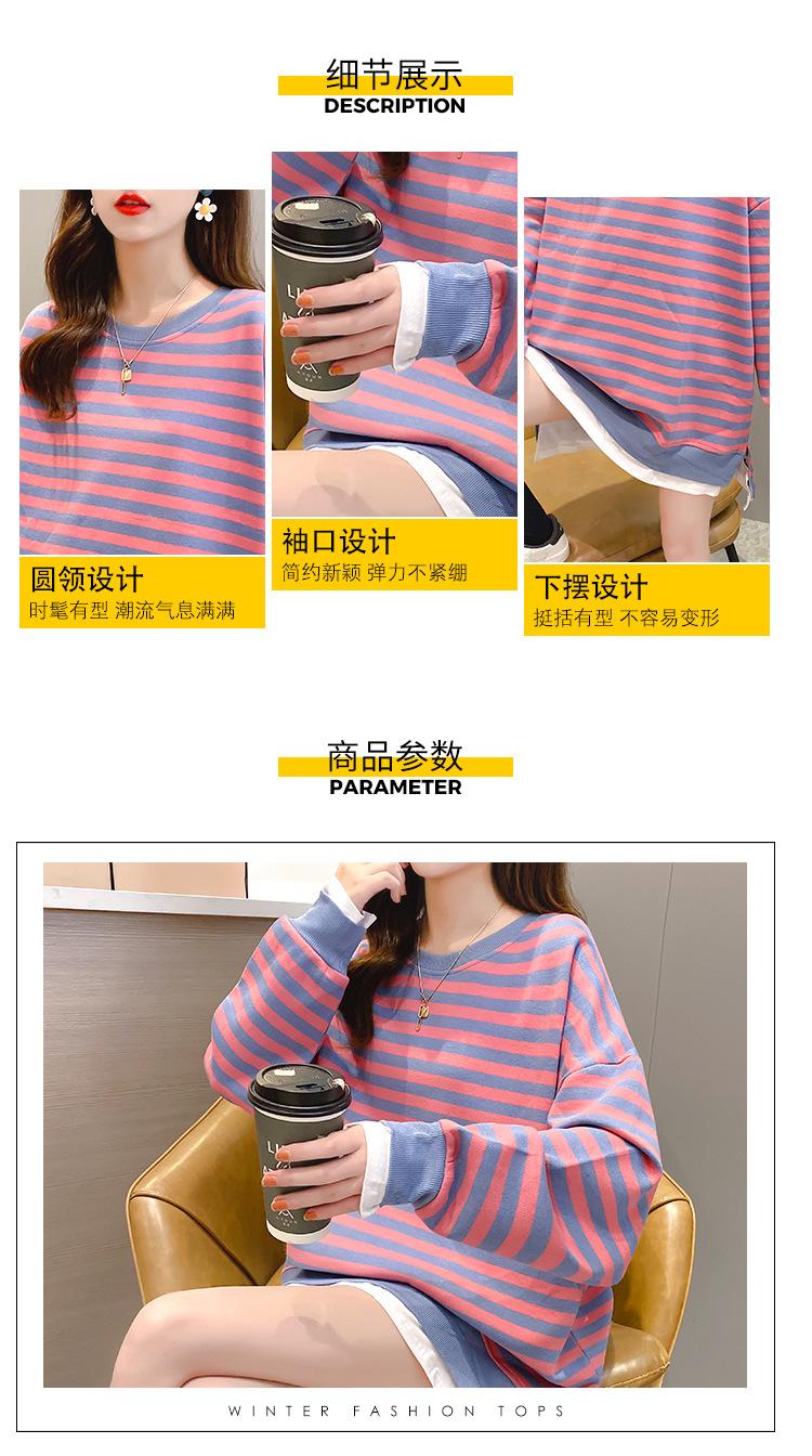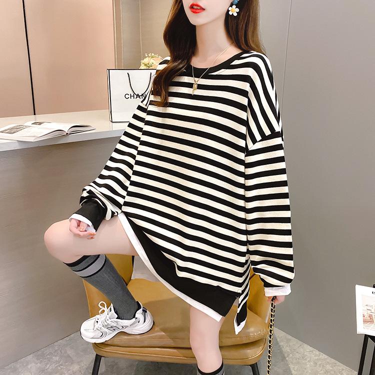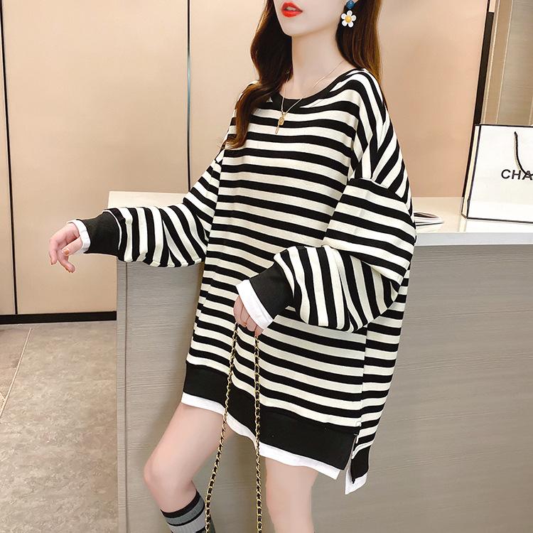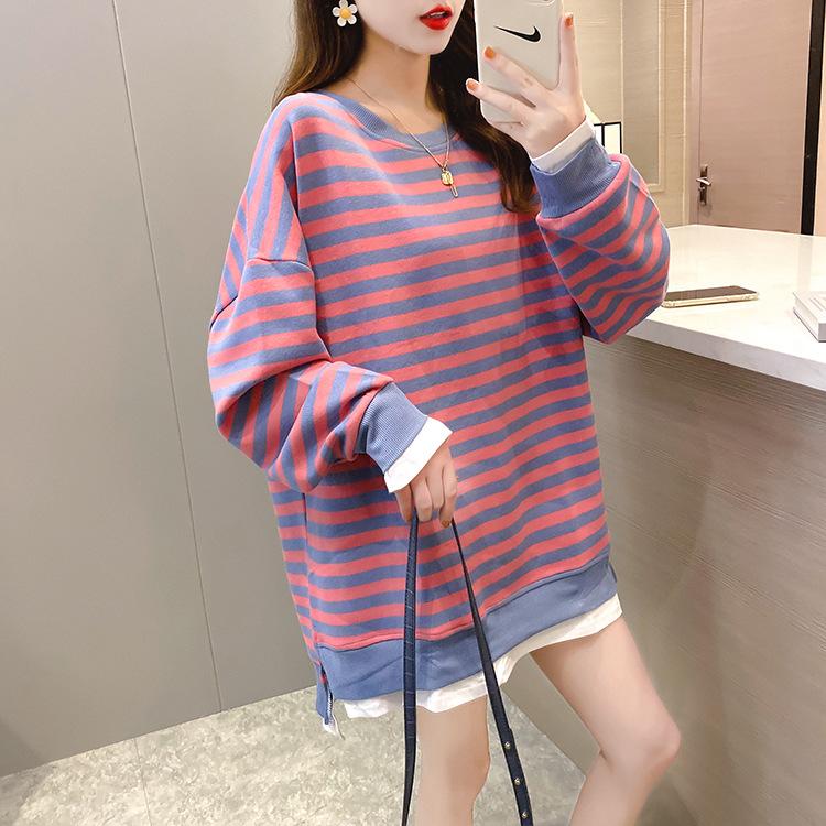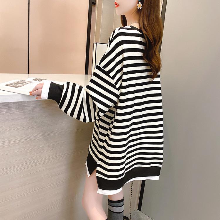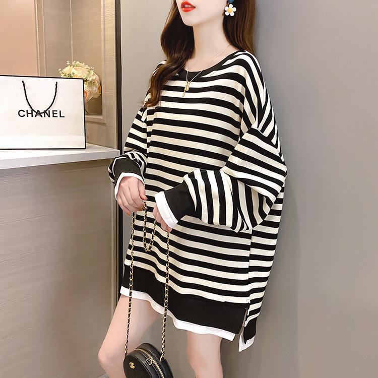 Tops de Maternidad 2022 Otoño Moda Coreana Versátil Talla Grande Ropa de Maternidad Sudadera Holgada de Cuello Redondo a Rayas de Imitación de Dos Piezas