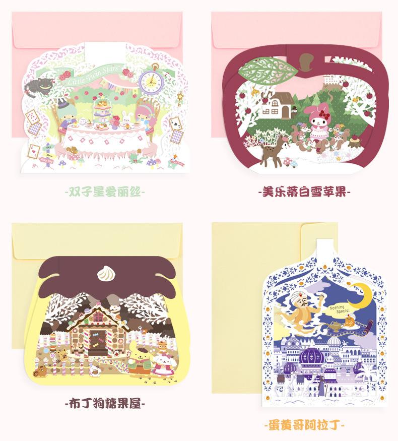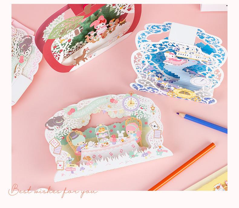Tarjeta de felicitación estéreo Sanrio Melody orejón Hello Kitty perro tarjeta de bendición regalo de cumpleaños día del maestro Navidad