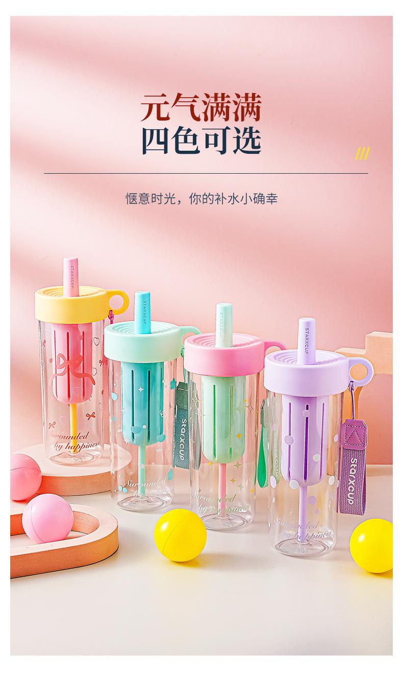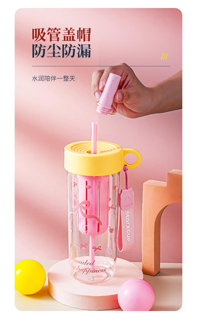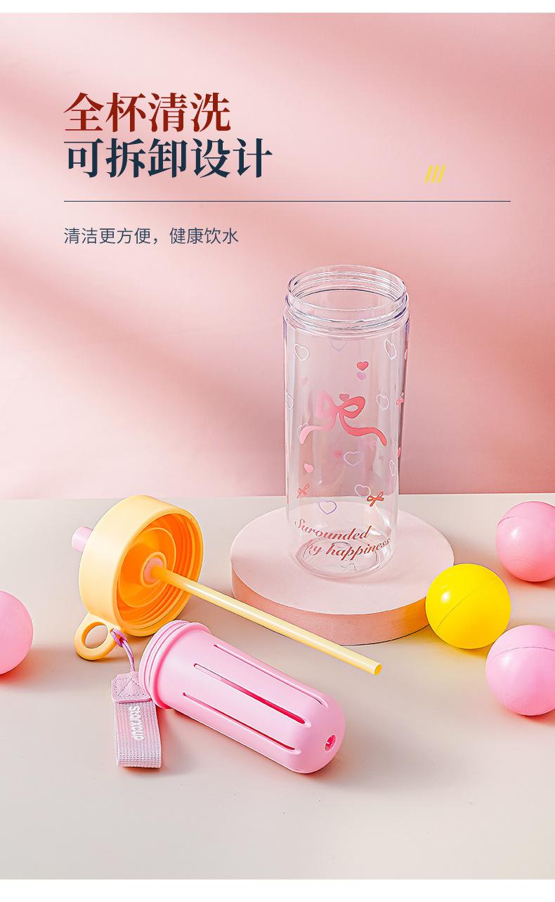 Nuevo Bolso de Paja de Plástico Vaso Botella de Agua Deportiva Oficina Exterior Vaso de Agua de Vidrio de Gran Capacidad Regalo Logotipo Impreso con UV