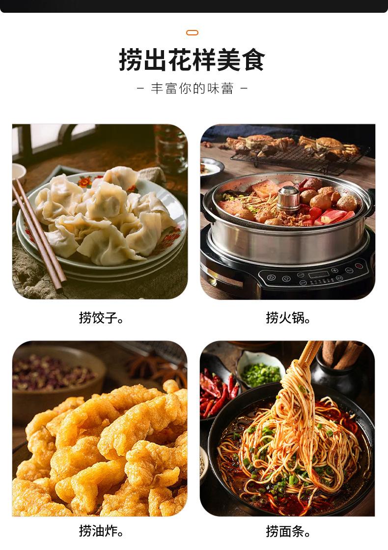 Acero inoxidable engrosado fondo plano línea de fuga restaurante de olla caliente pesca de carne frito escurridor de fideos picante caliente colador de dumplings