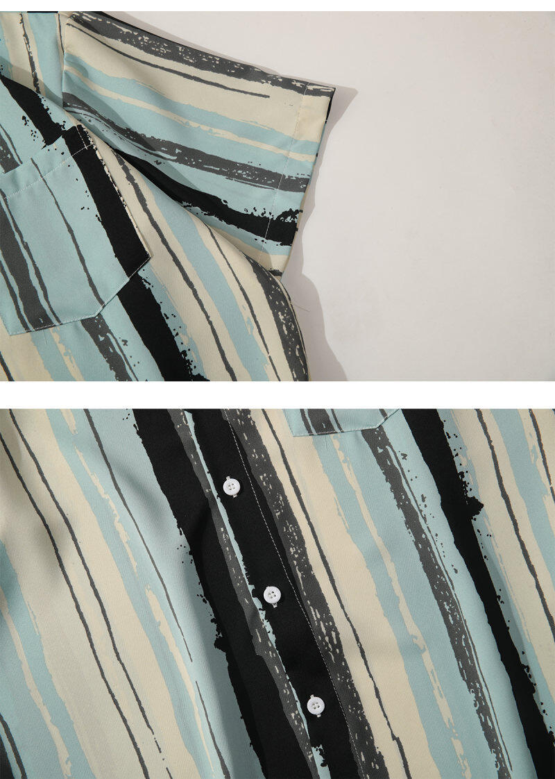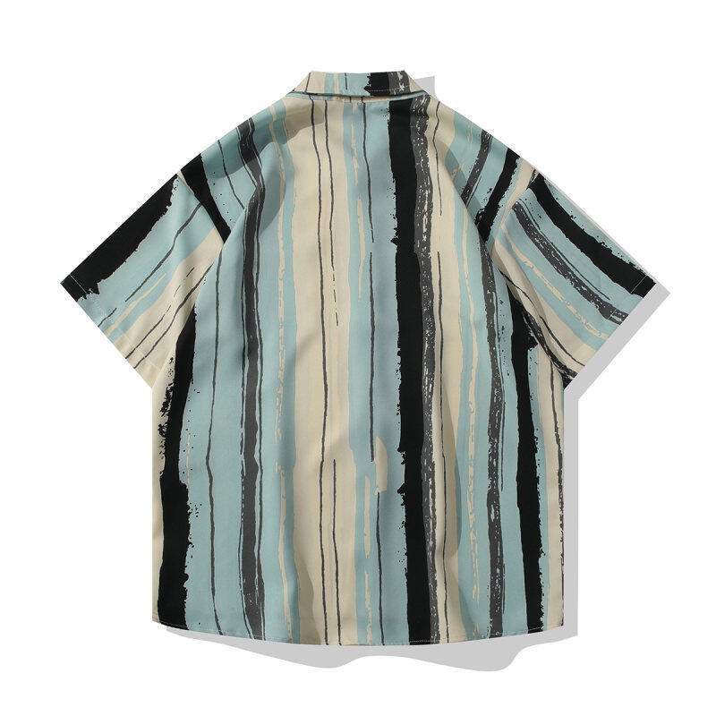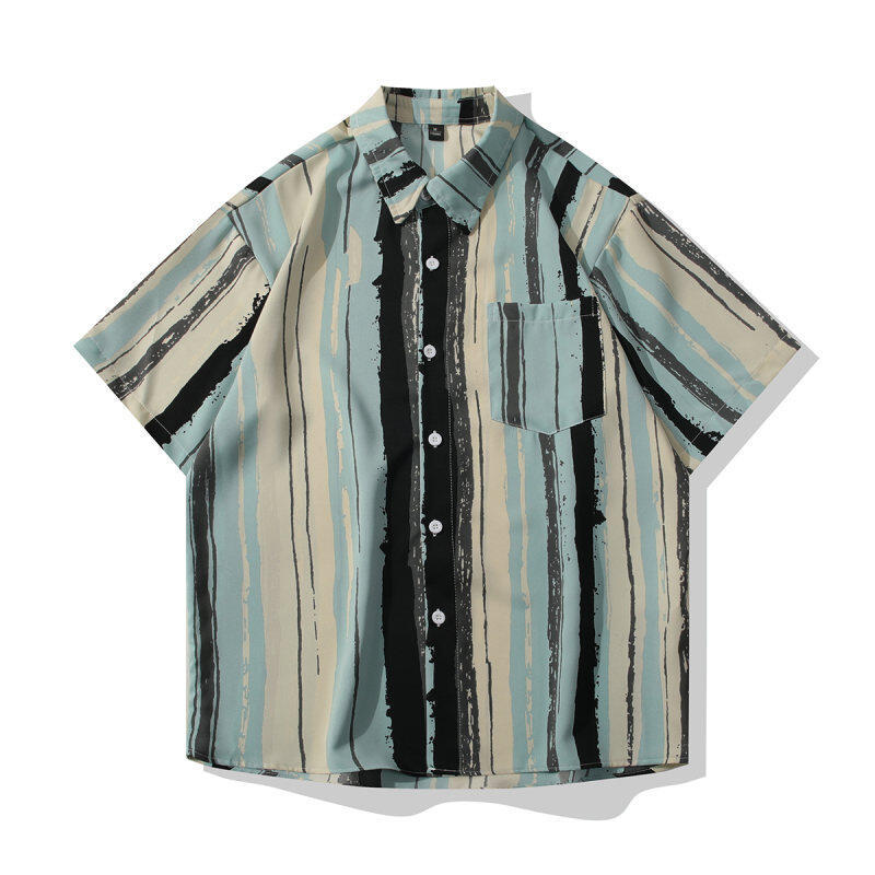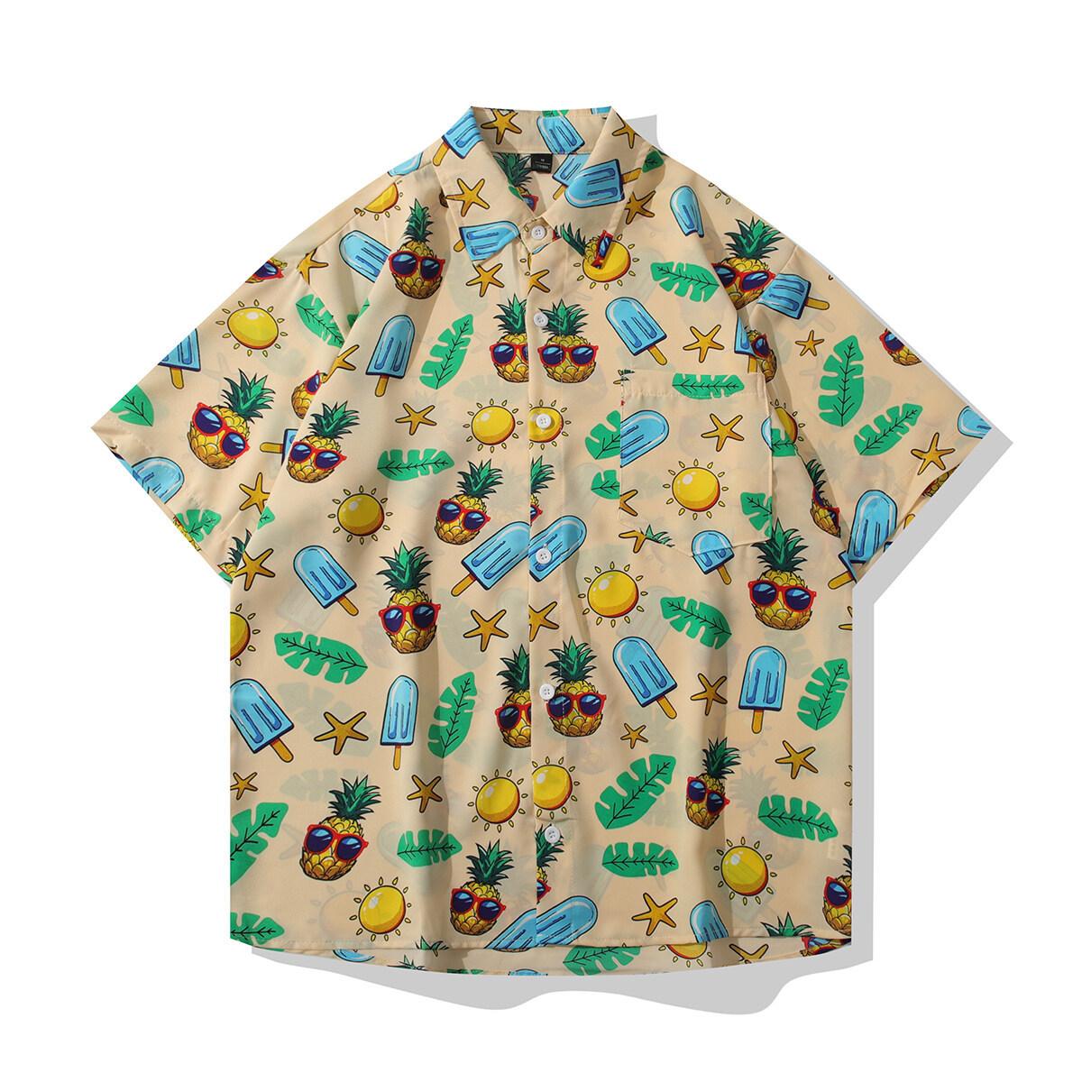 2025 Nueva Camisa de Verano de Playa de Manga Corta para Hombre, Moda Casual, Estampada, Sensación Seda de Hielo, Camisa Delgada Holgada para Hombre