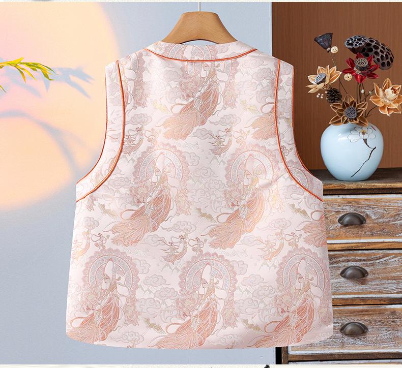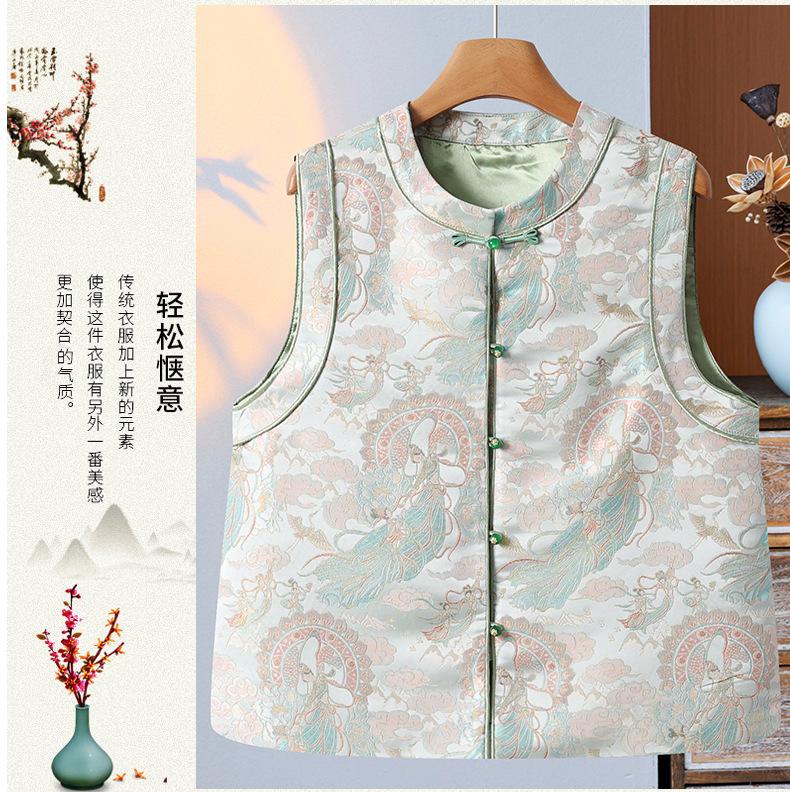 Estilo Nacional 2025 Brocado Jacquard Chino Primavera Dunhuang Retro Chaleco Hebilla Nuevo Top Chaleco