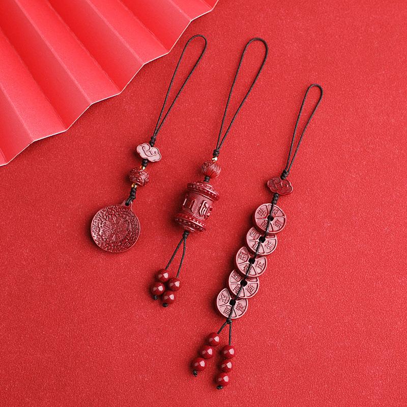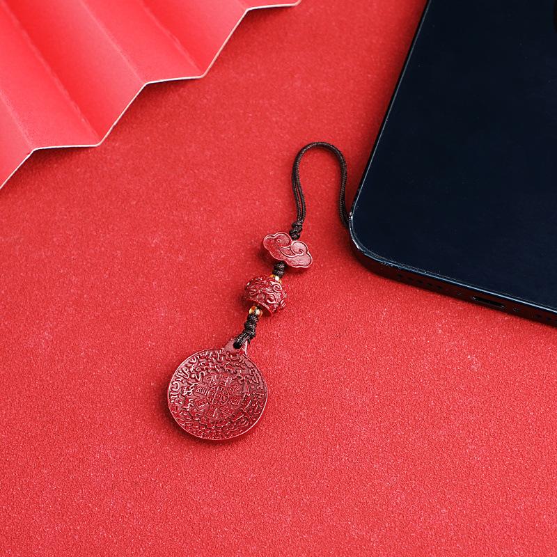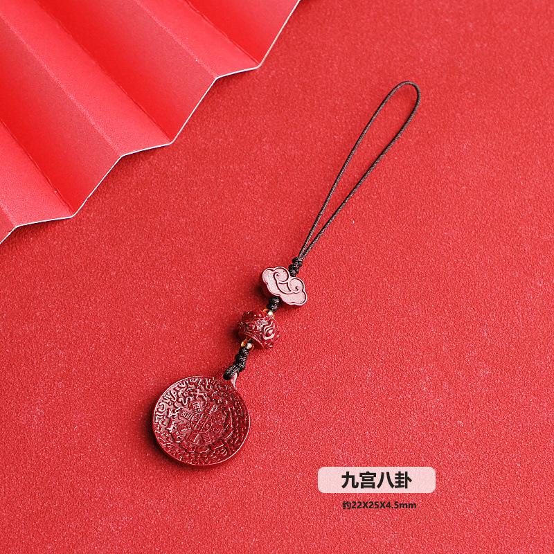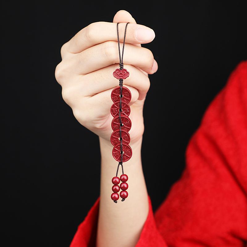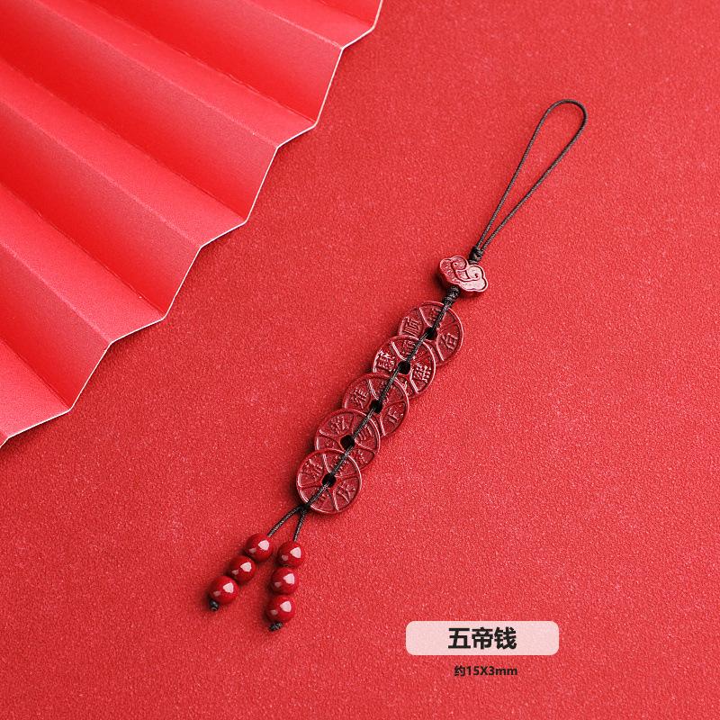 Venta al por mayor cinabrio natural alto contenido arena oro púrpura dinero de los cinco emperadores colgante cadena para teléfono móvil nueve palacios bagua tambor giratorio