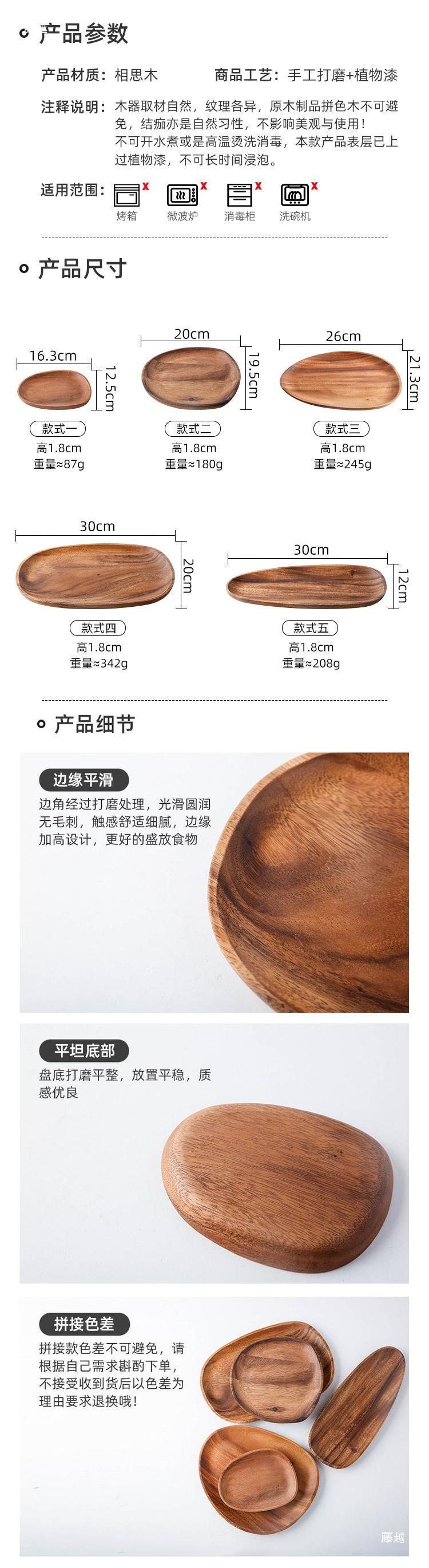 Whole walnut special-shaped plate, 5-piece set, special-shaped plate (large * medium + small) + melon seed pla...