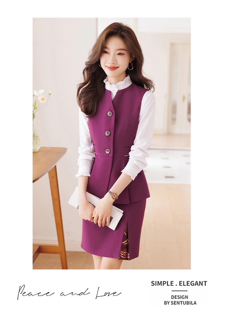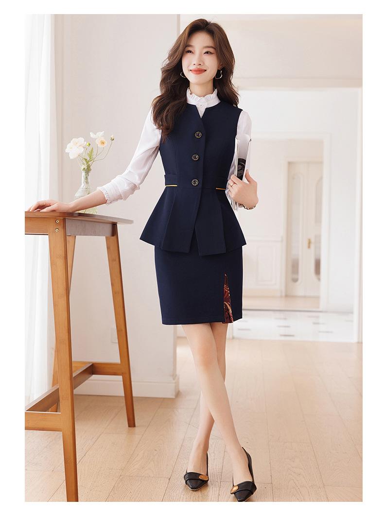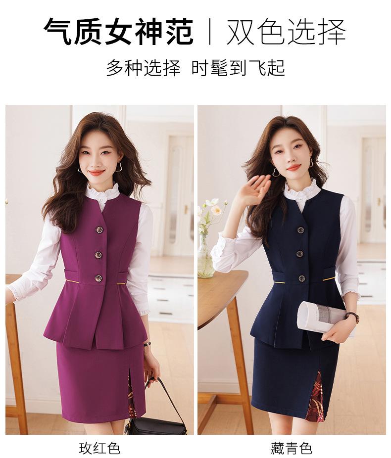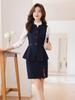 Primavera, Otoño e Invierno 2024 Nuevo Traje Profesional de Manga Larga con Cuello de Traje Pequeño Chaqueta Chaleco Pantalón Falda Traje de Dos Piezas para Mujer