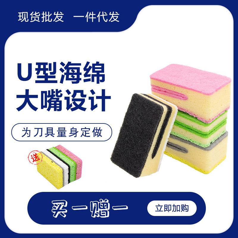 Estropajo Mágico para Limpieza de Ollas, Esponja para Lavar Platos de Cocina de Doble Cara, Esponja para Lavar Platos de Boca Grande, Limpieza en Forma de U de Cuchillo de Cocina