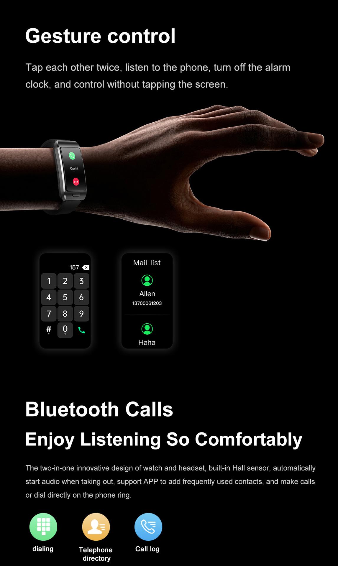 Otras funciones: calculadora, calendario, despertador, ajustes de llamada, temporizador, cronómetro, minijuegos, entrenamiento de respiración, pronóstico del tiempo (admite aplicaciones meteorológicas de terceros), función de bloqueo de pantalla con contraseña, encontrar teléfono, encontrar teléfono, encontrar pulsera, interfaz de usuario de pantalla dividida, seguimiento GPS deportivo.