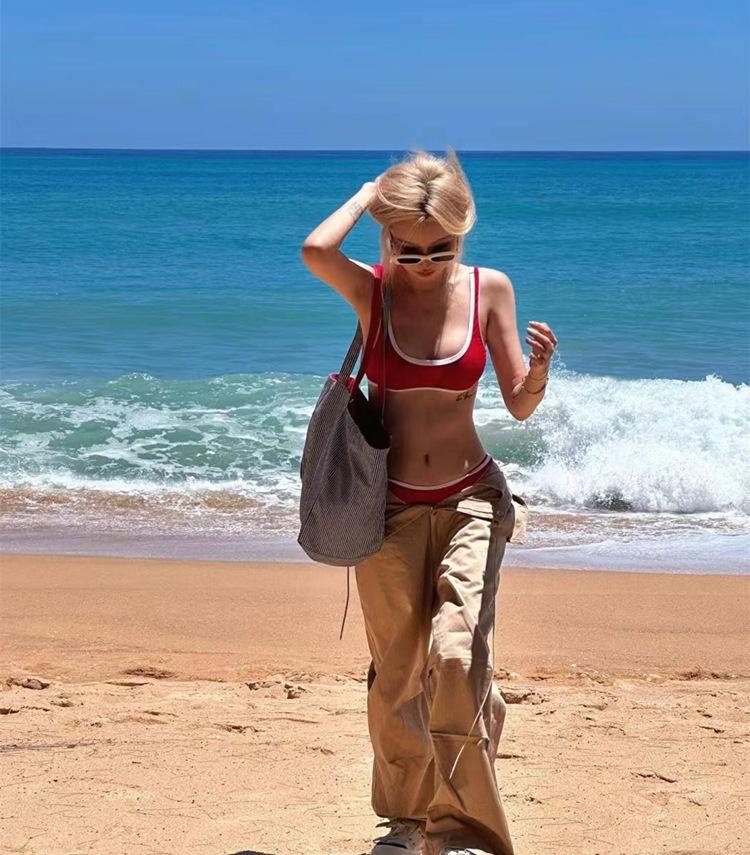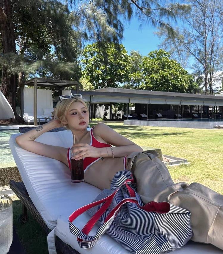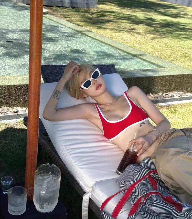 Nuevo Retro Rojo Sexy Ins Bikini Deportivo Dividido Sexy Pecho Pequeño Push up Fábrica de Origen Aguas Termales Venta al por Mayor