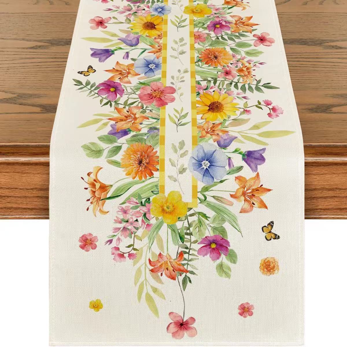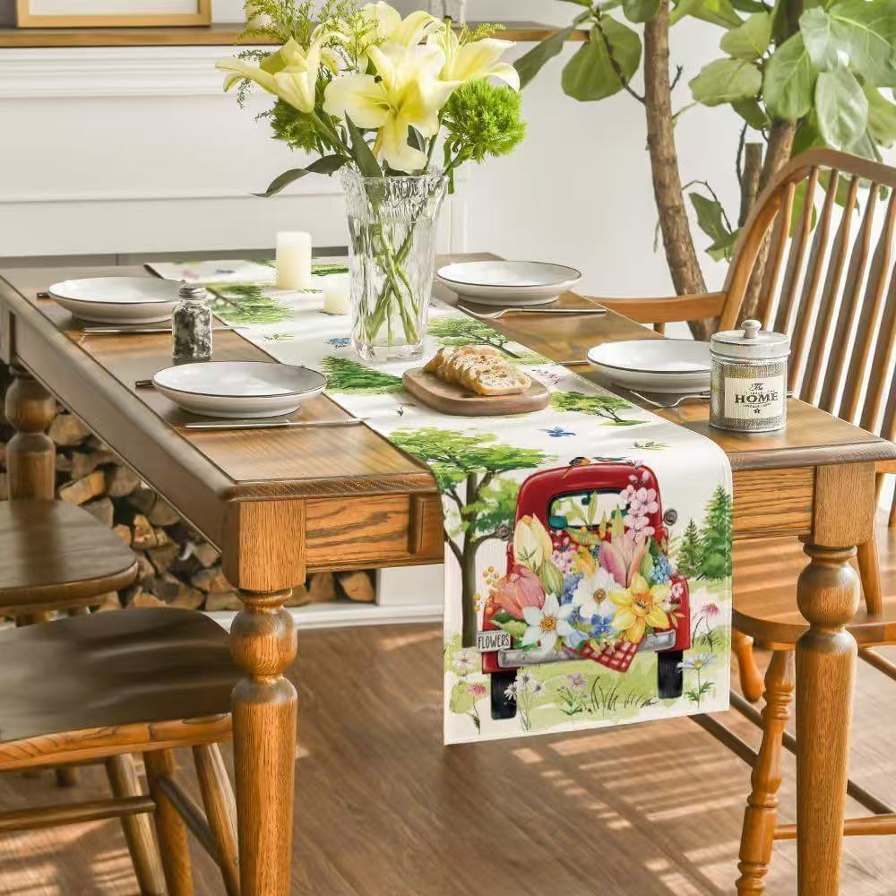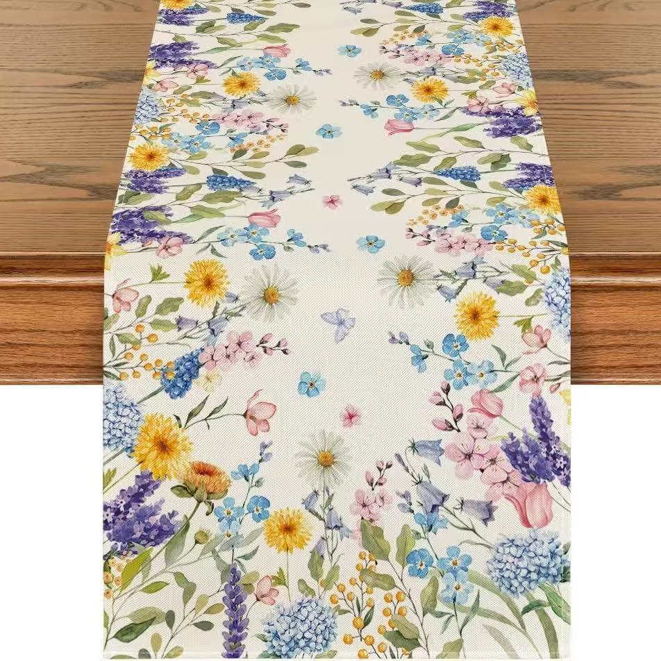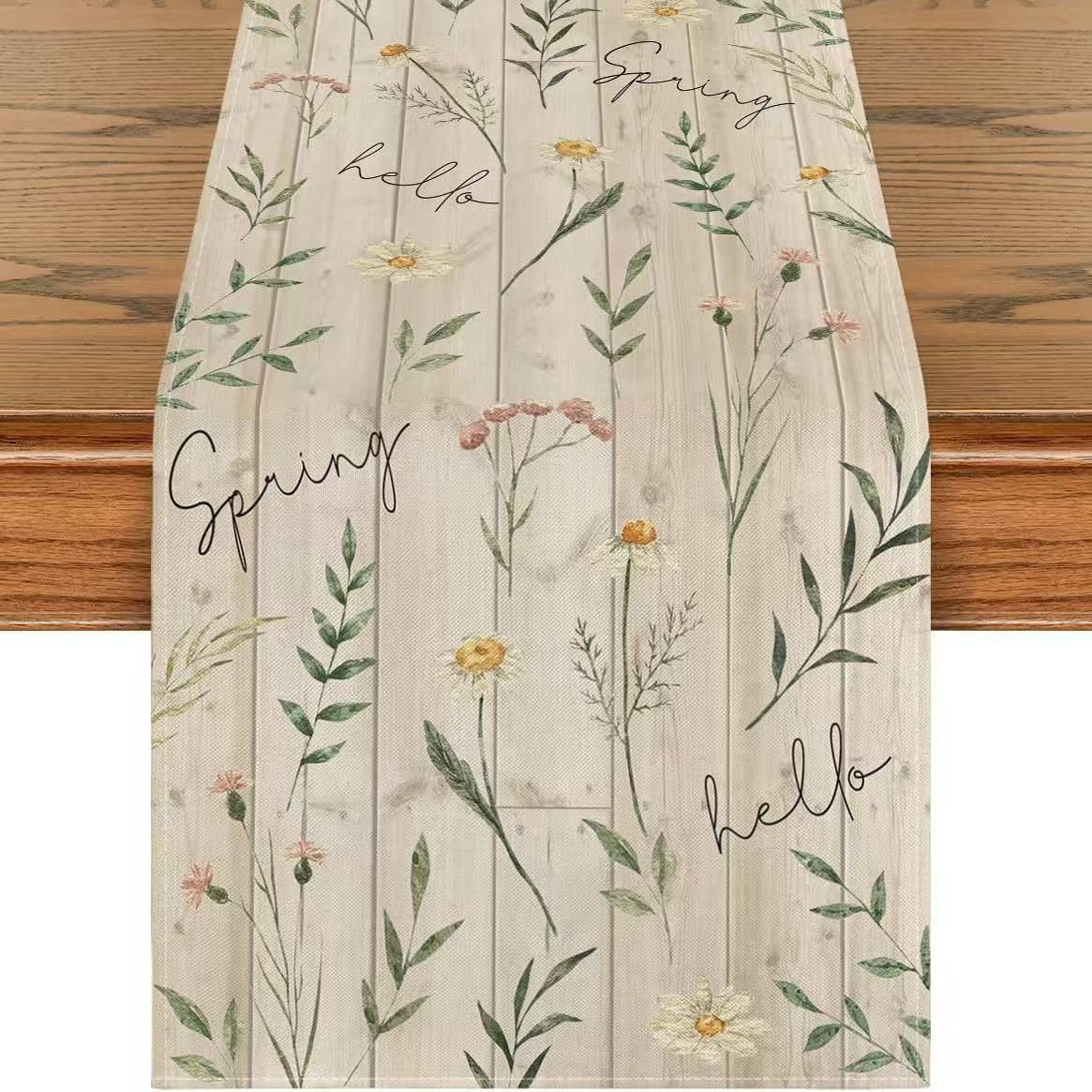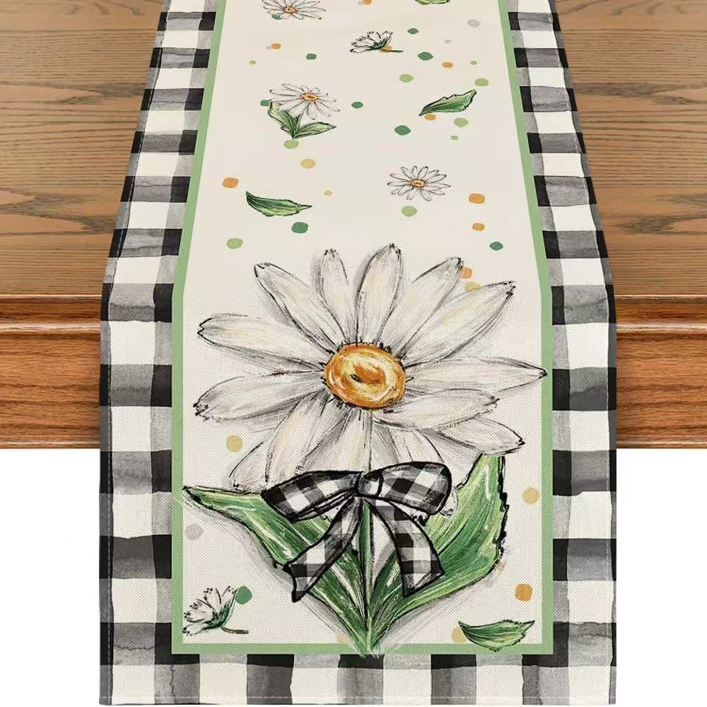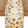 Camino de mesa transfronterizo de primavera y verano con estampado de girasoles, verde verano con flores, mantel individual de lino aislado para mesa de comedor, mantel para mesa de centro