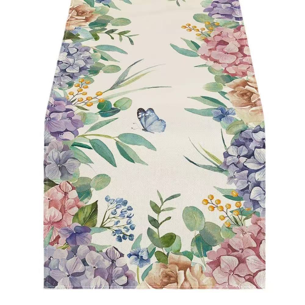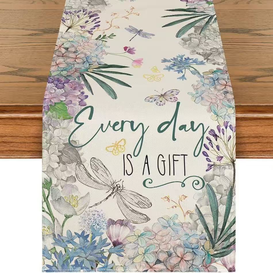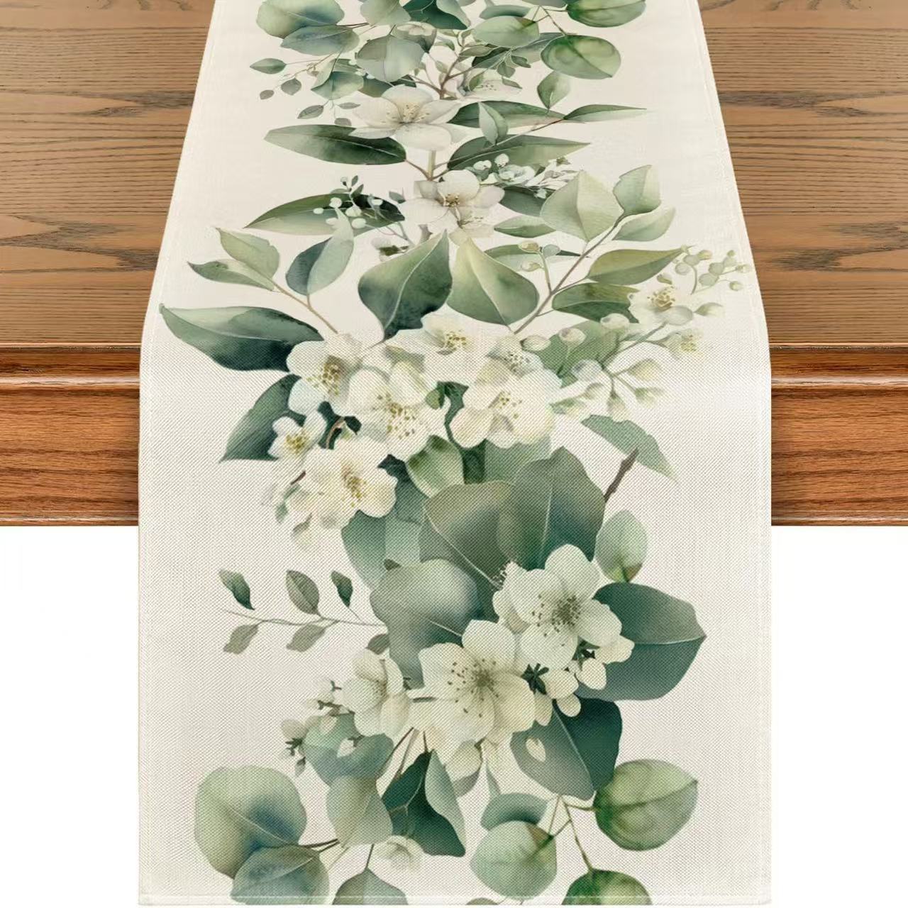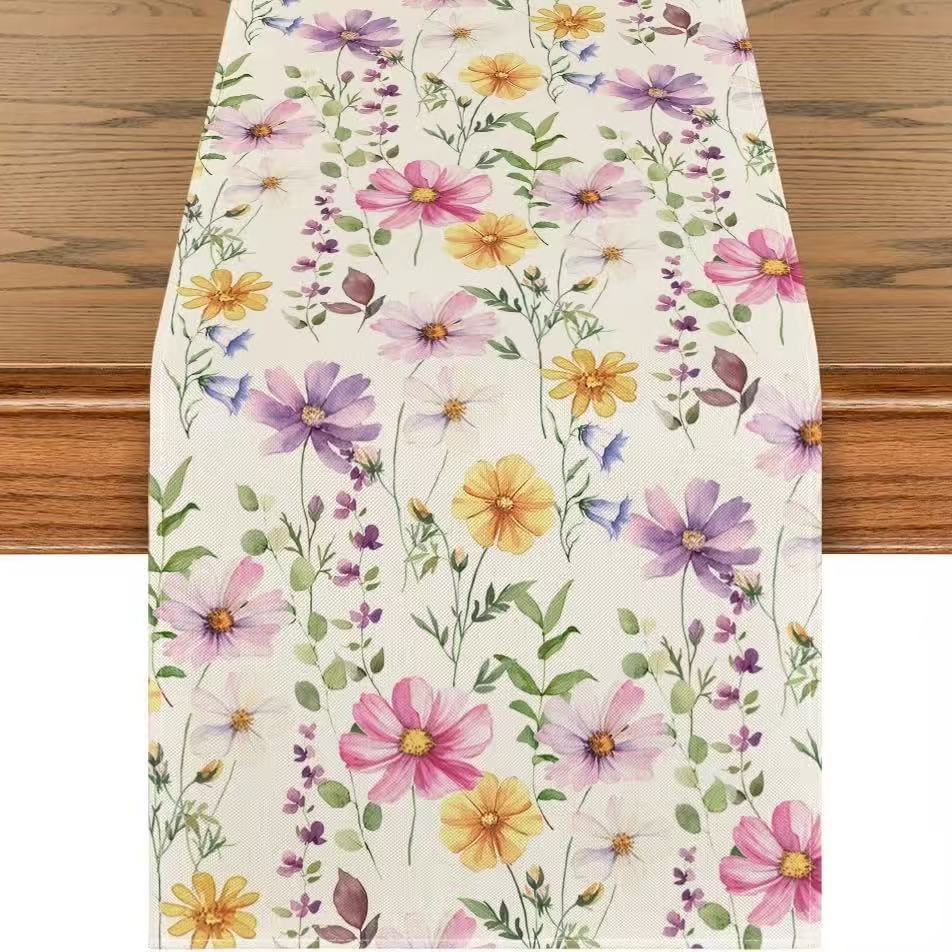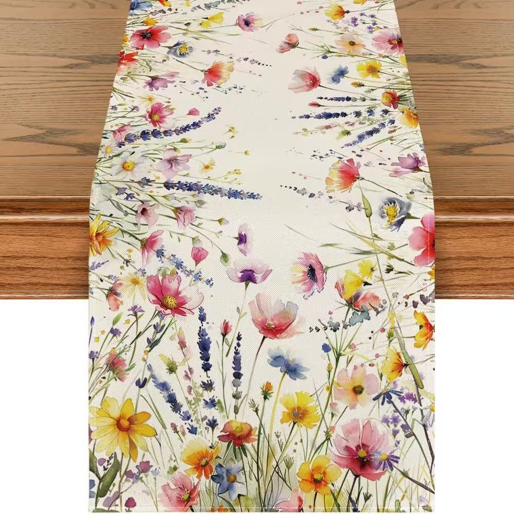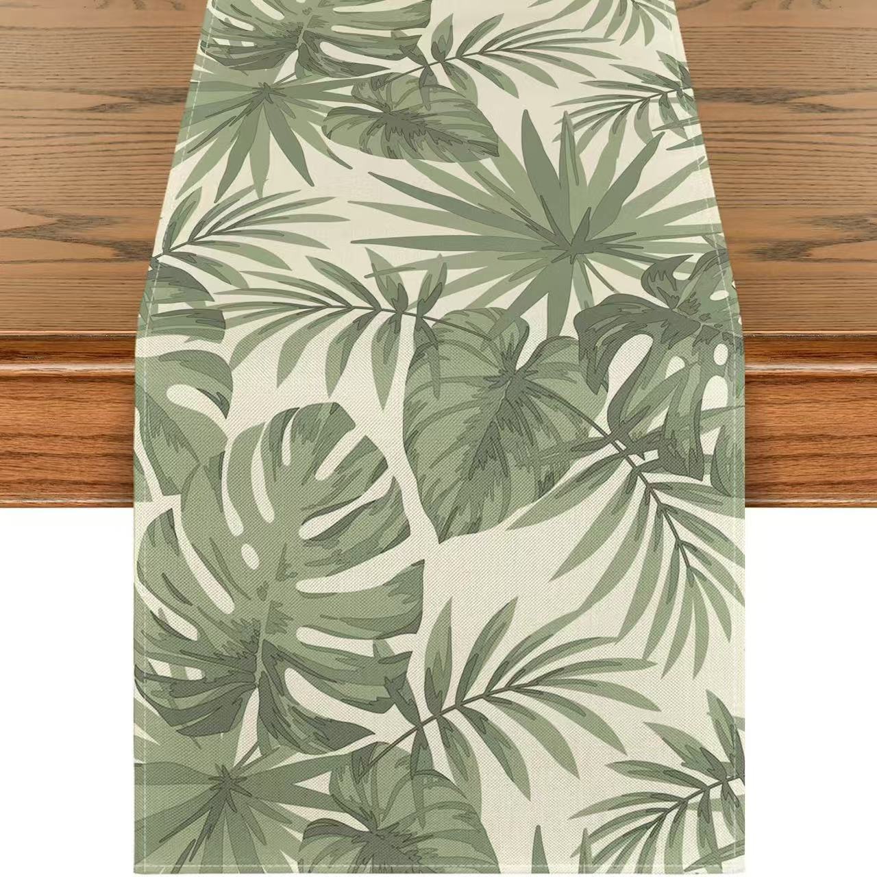 Camino de mesa transfronterizo de primavera y verano con estampado de girasoles, verde verano con flores, mantel individual de lino aislado para mesa de comedor, mantel para mesa de centro