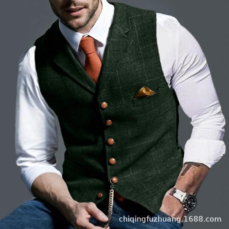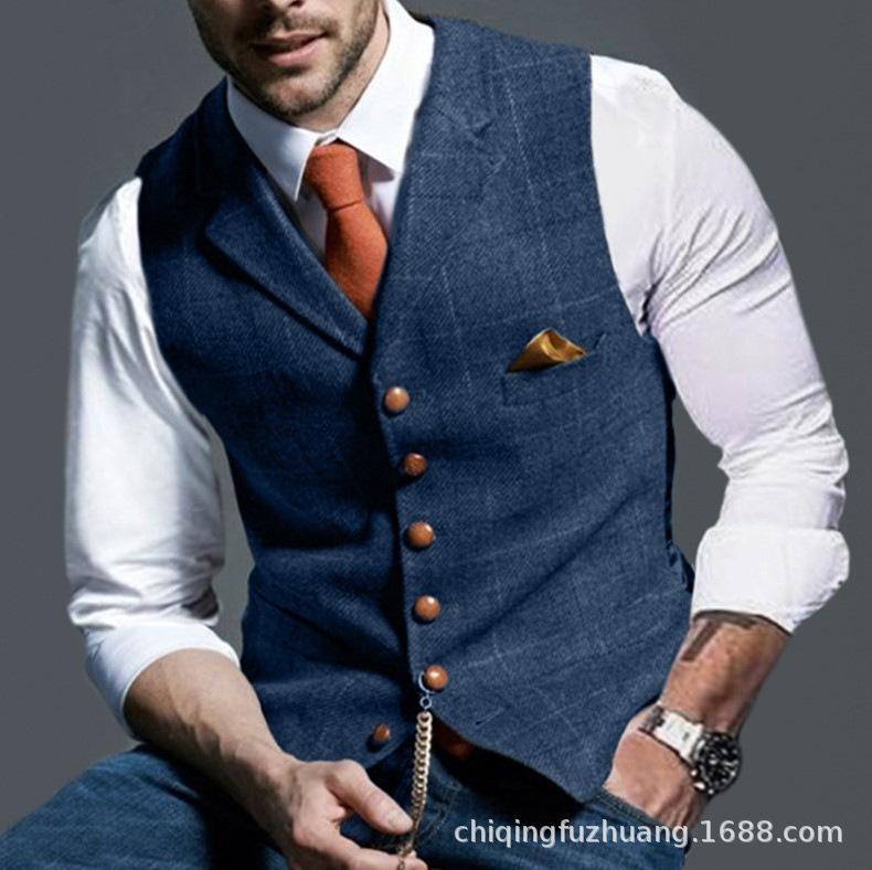 Transfronterizo Primavera y Otoño 2025 Europa y América Amazon Chaleco Casual de Cuadros para Hombre Chaleco Ajustado para Hombre Chaqueta para Hombre