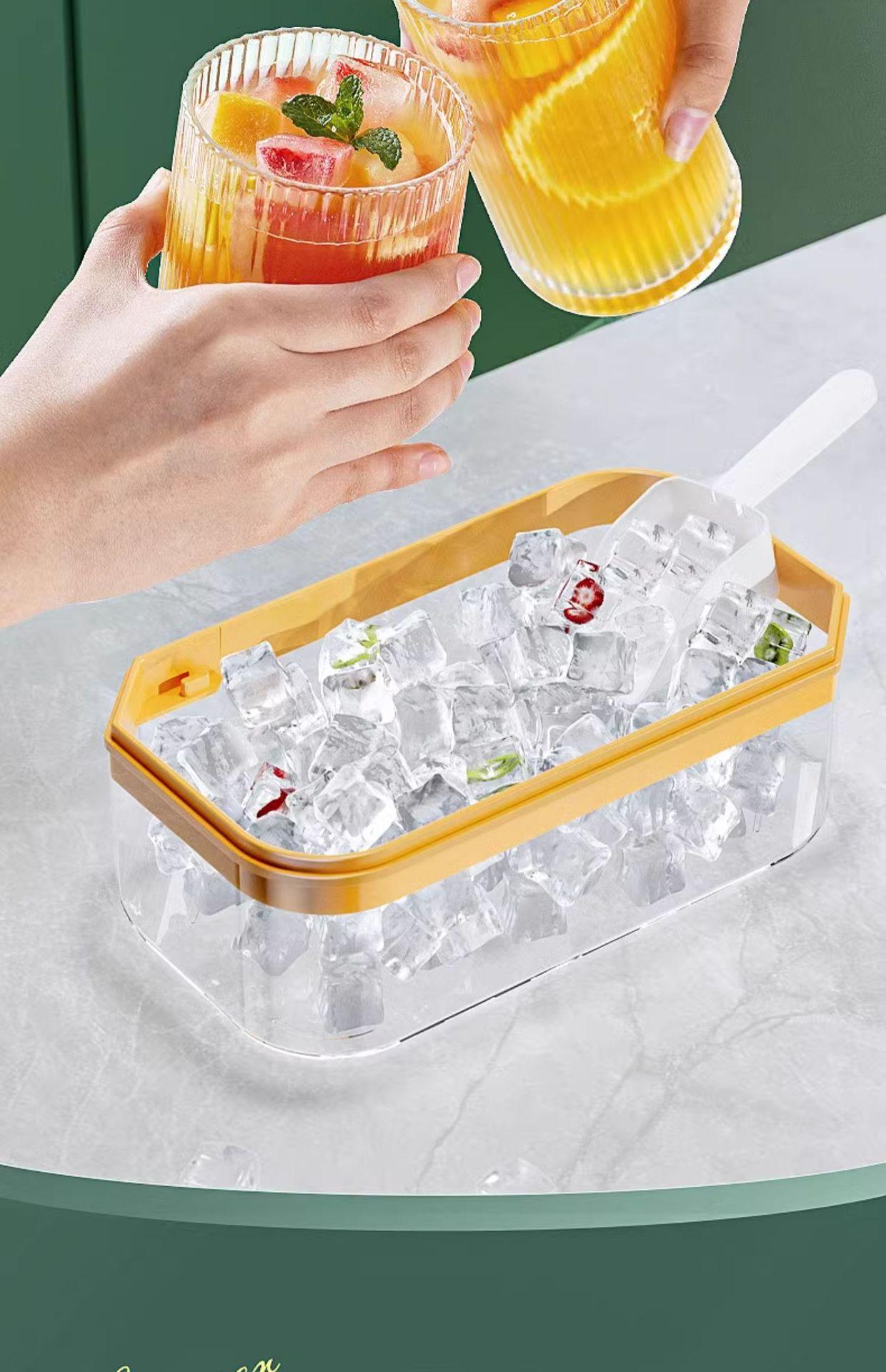 Molde para Cubitos de Hielo de Gran Capacidad, Bandeja para Hielo a Presión, Grado Alimenticio para Uso Doméstico, Fabricación de Hielo, Caja de Almacenamiento de Hielo con Tapa, Cubitos de Hielo Congelados para Refrigerador