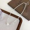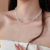 Collar con colgante de perla plateada irregular rota para mujer, diseño de alta gama, cadena para clavícula simple de temperamento de lujo ligero, cadena para el cuello