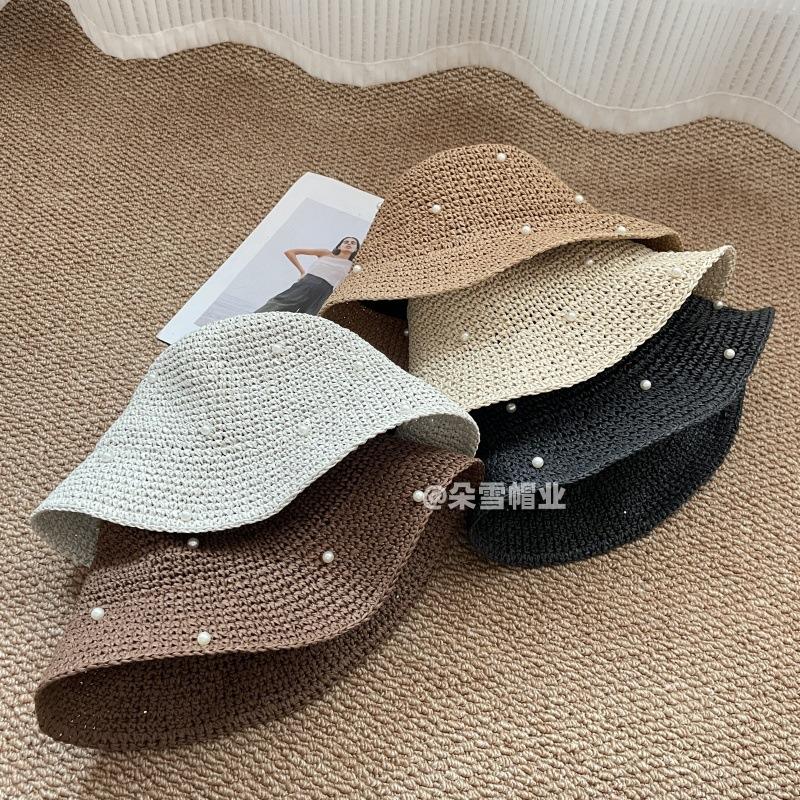 Sombrero de Rafia de Ala Ancha para Mujer Verano Viaje Protección Solar Sombrero para el Sol Sombrero de Playa Sombrero para el Sol Sombrero Plegable Tipo Cubo Fabricante