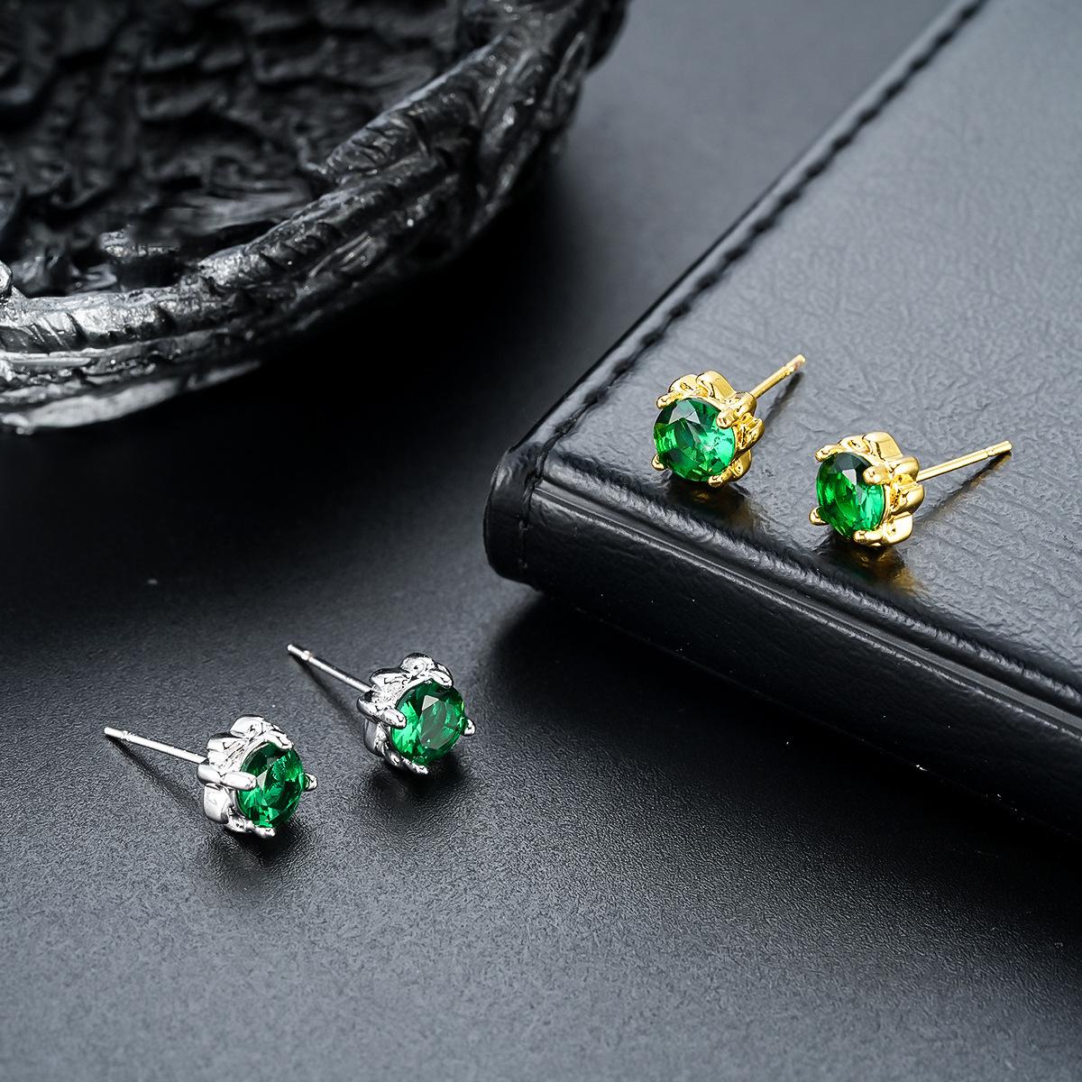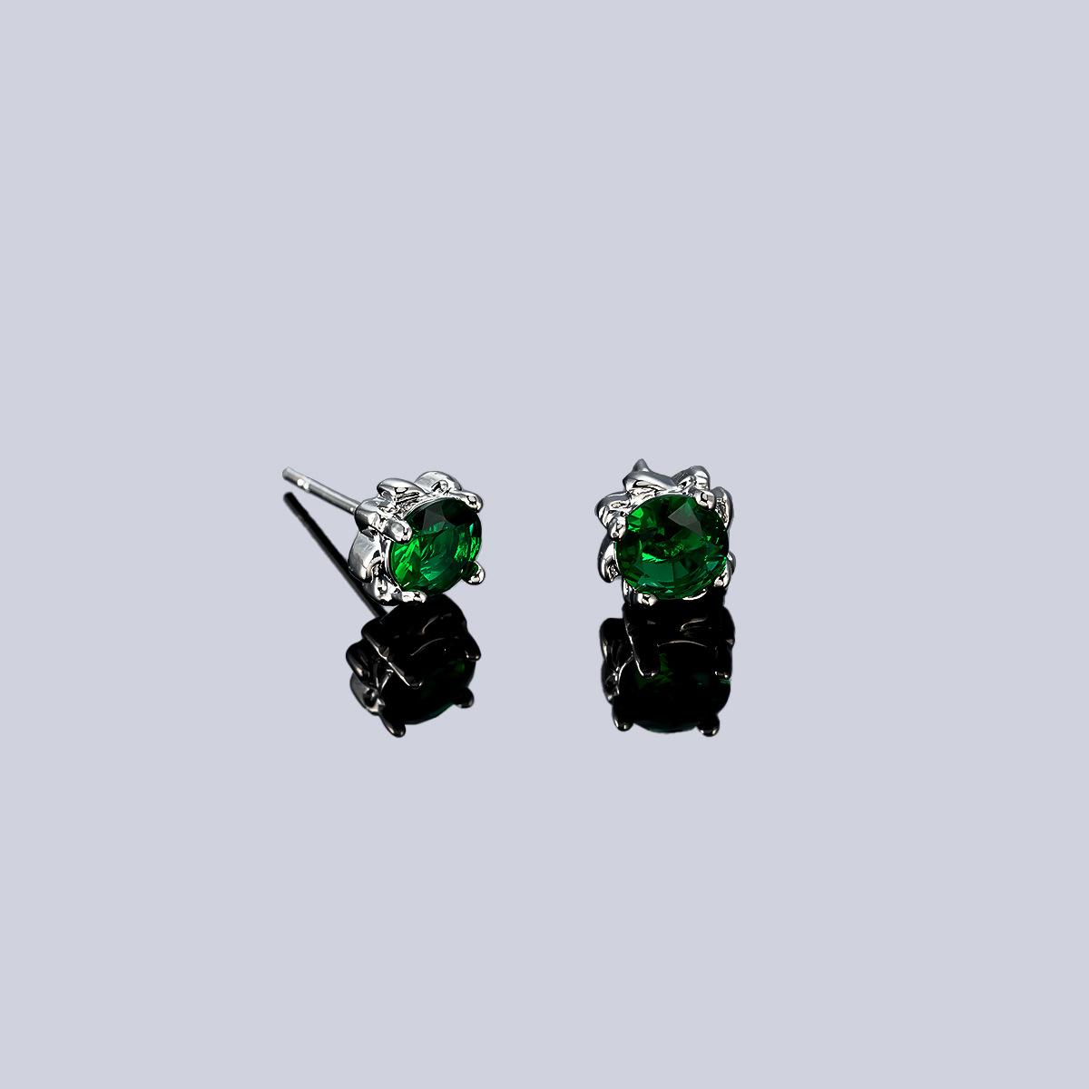 X864-a (four-claw green diamond earrings) silver pair, X864-b (four-claw green diamond earrings) gold pair