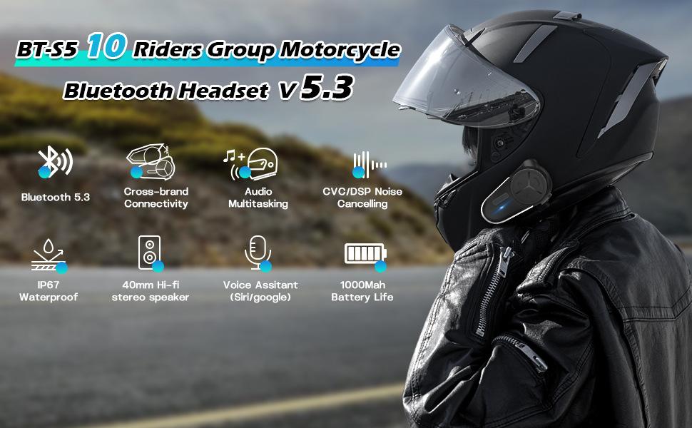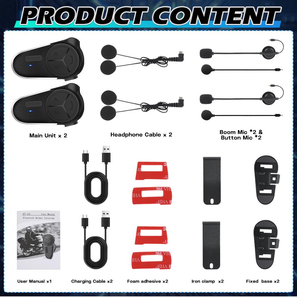 Bt-S5 Versión de Máquina Dual Casco de Motocicleta Uso Intercomunicador Reducción de Ruido Auricular Bluetooth Soporte 1 a 10 y Asistente de Idioma Fm