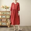 Vestido de Algodón y Lino de Estilo Literario de Cuello Redondo y Manga Larga Casual Holgado de Talla Grande para Mujer Nuevo Estilo Primavera y Otoño 2023