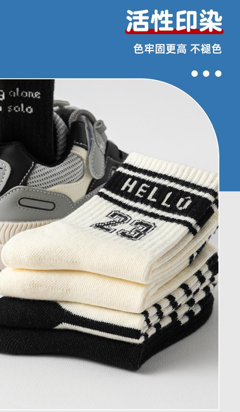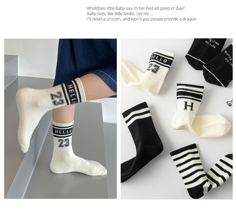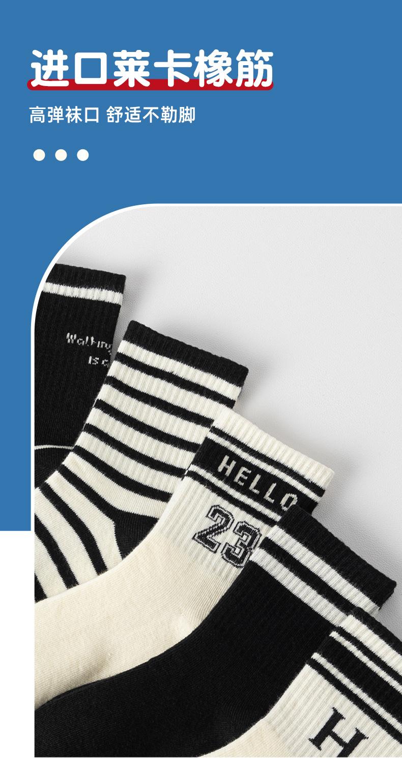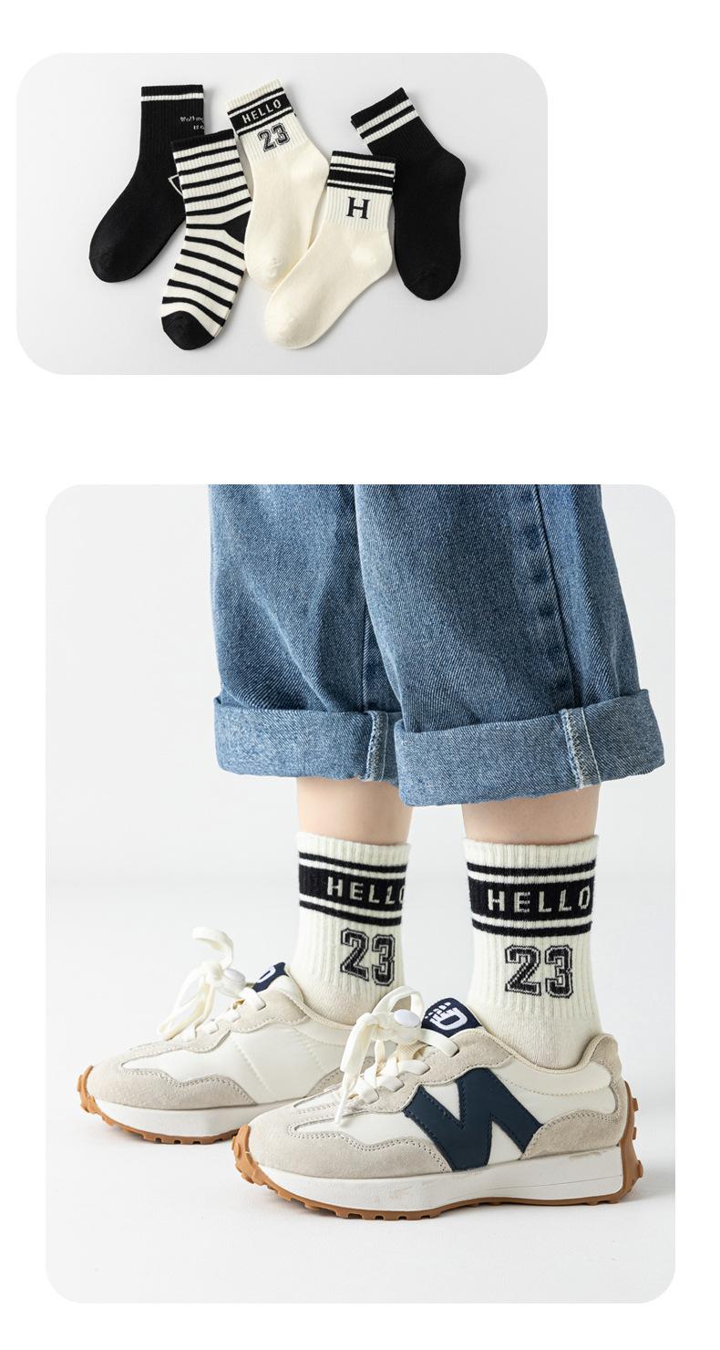 Ml763hello23 black and white trendy socks, Ml740 small r mid-calf socks-5 pairs, 2462 white mid-calf socks-5 p...