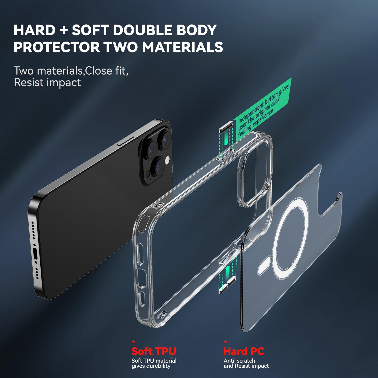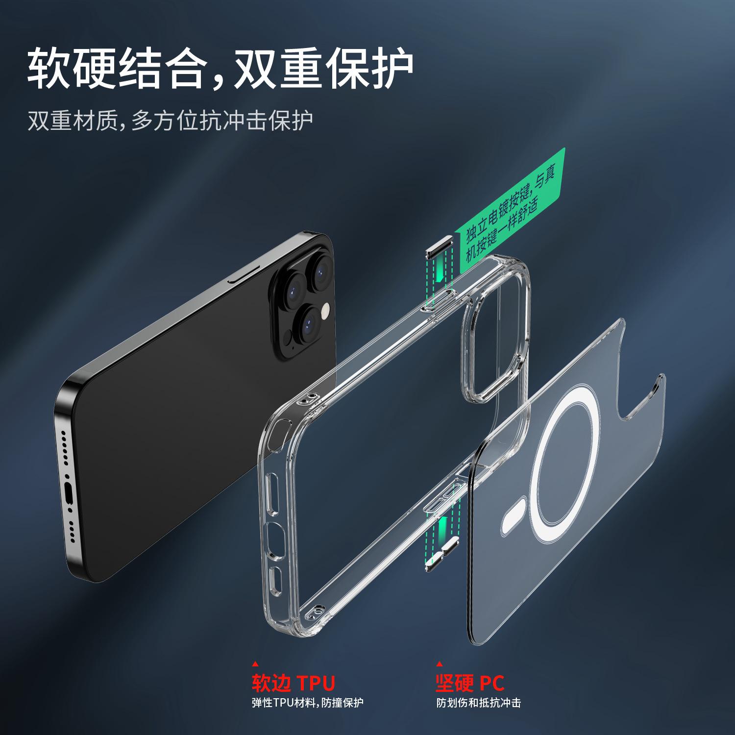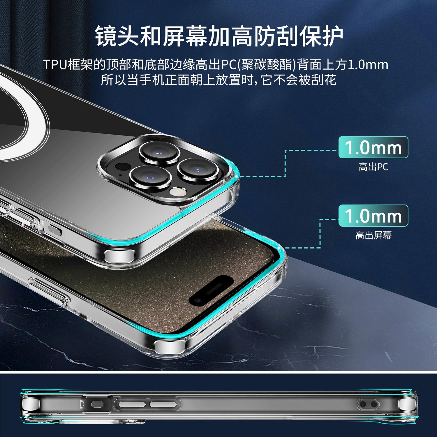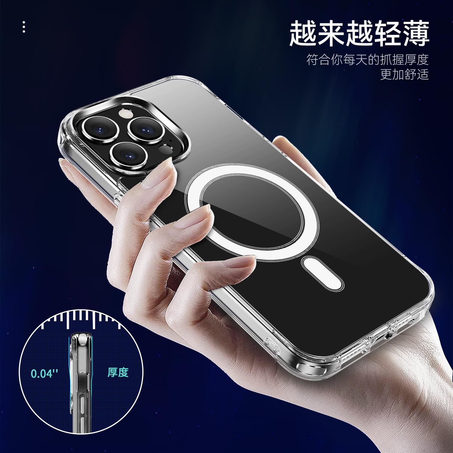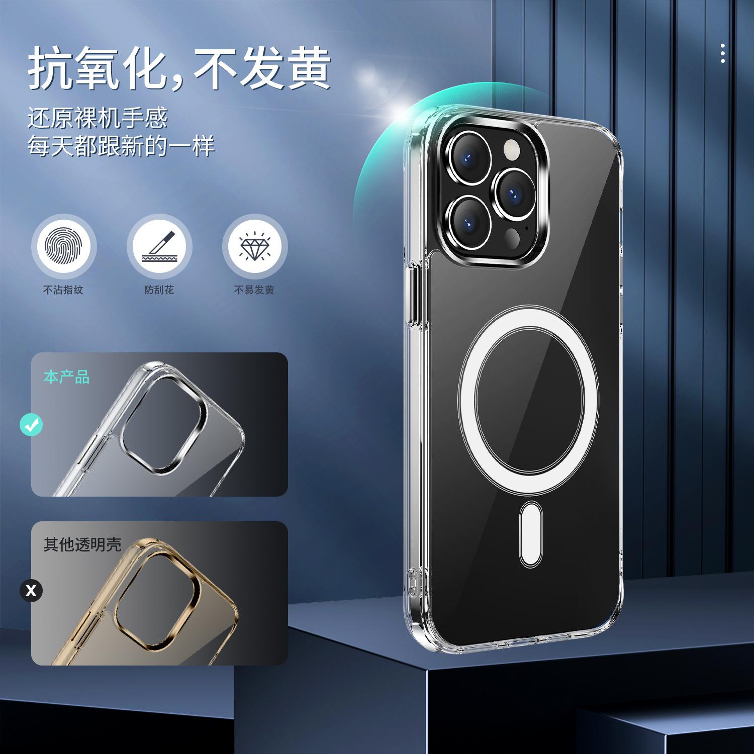 Aplicable a funda magnética para teléfono Apple iPhone 15 14promax transparente cristalina anticaídas 2.0 funda protectora funda MagSafe