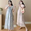 2025 Nuevo Vestido de Maternidad Verano Encaje Casual Moda Cuello Cuadrado Suelto Talla Grande Vestido para Mujeres Embarazadas