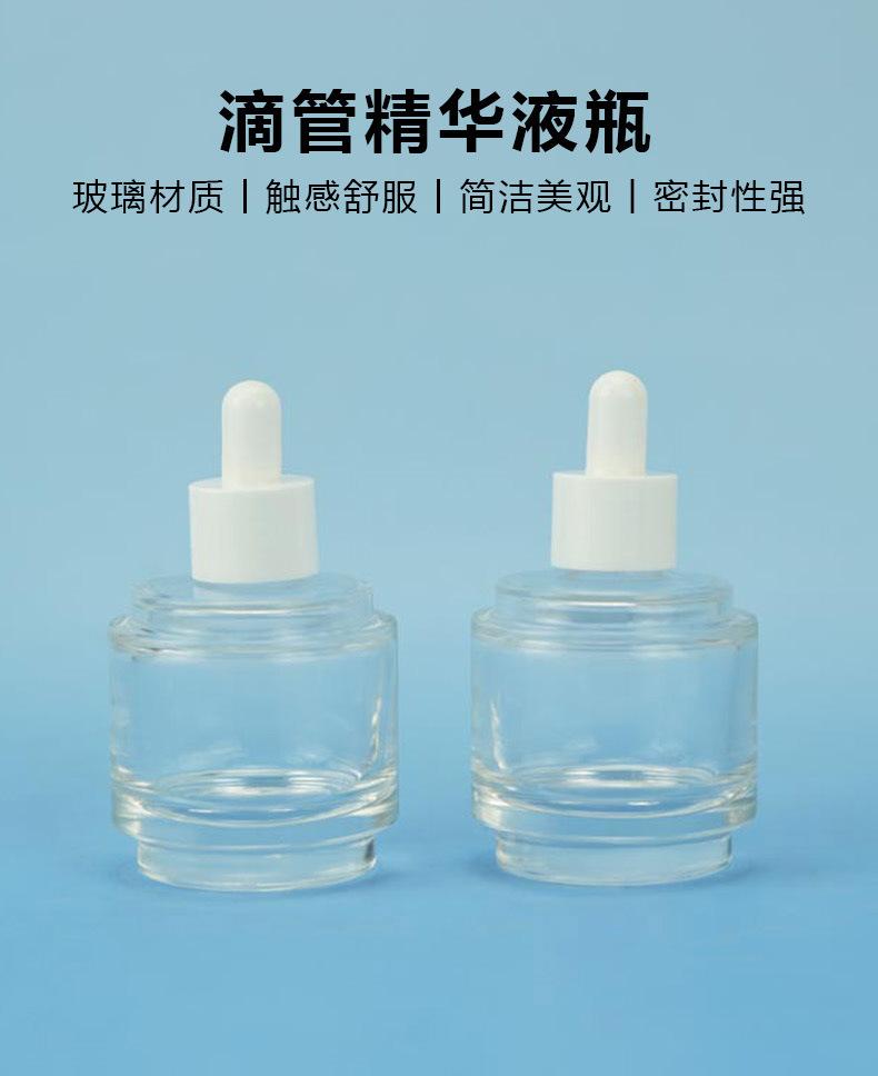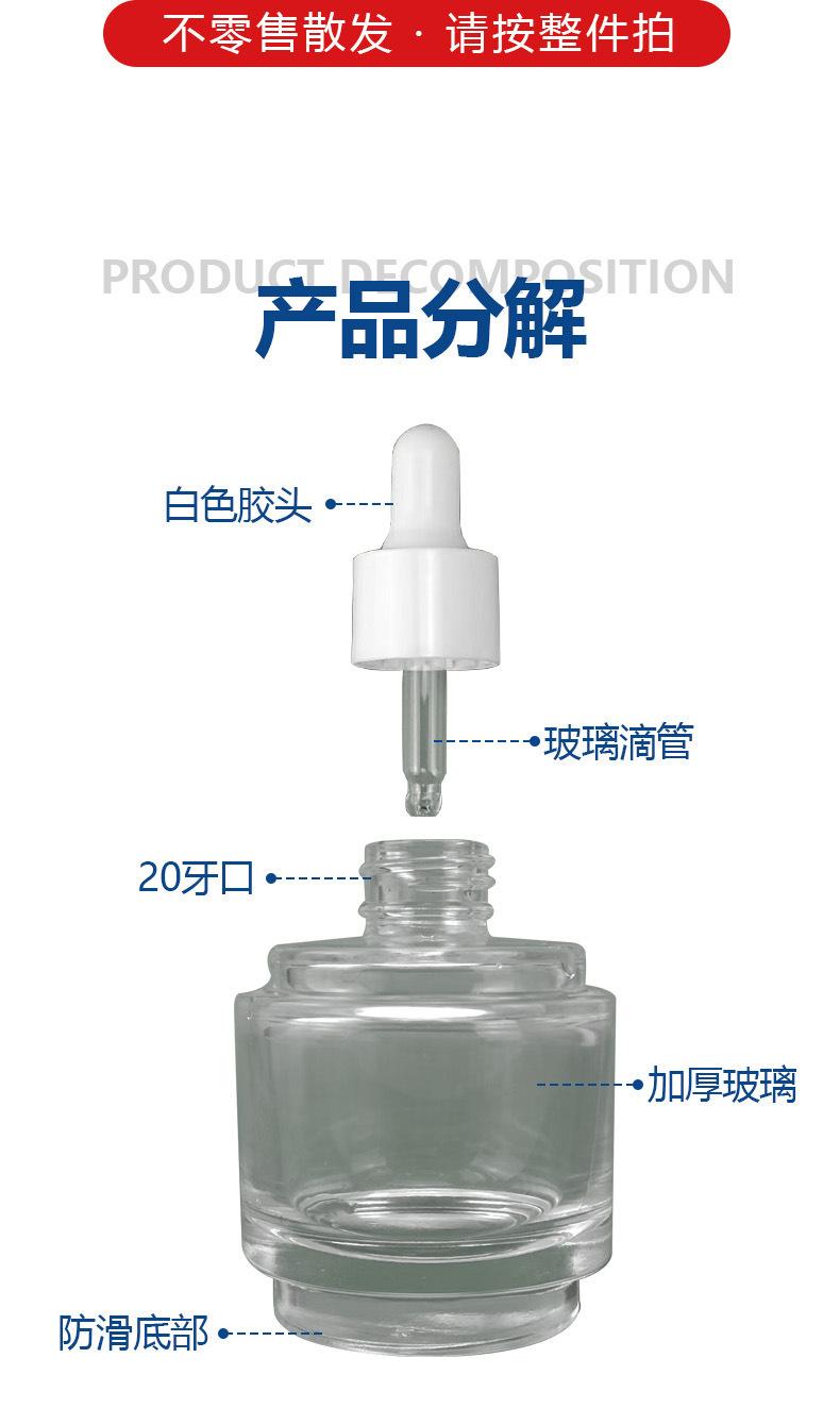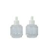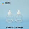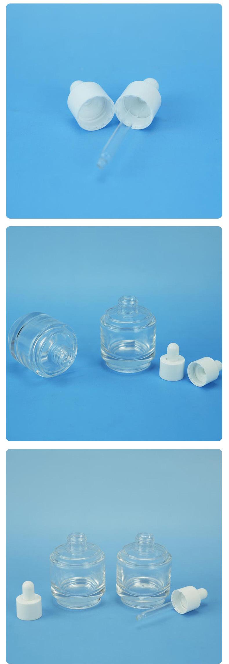 50ml; transparent light bottle + white ring and white plastic tip dropper; glass