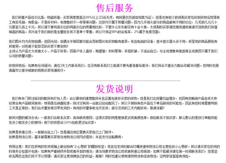 Los productos que vendemos son rentables y ofrecen una excelente relación calidad-precio, con alta satisfacción del comprador.99%eso es todo(No hay prueba de lo que dices, pero hay evidencia de los archivos de integridad de Alibaba)Sin embargo, hay algunos compradores exigentes que sienten que la mano de obra es un poco tosca, hay defectos, los materiales no son buenos y son diferentes de lo que imaginaban, etc. después de recibir la mercancía. Estos no son problemas de calidad. Porque casi la mayoría de los productos tienen precios diferentes, desde unos pocos centavos hasta unos pocos yuanes, decenas de yuanes o incluso cientos o miles de yuanes, así que por favor no compare la calidad de los productos de bajo precio con los productos de alto precio. Pase lo que pase, no hay perfección. Los compradores que son demasiado exigentes, por favor tomen un desvío o solo compren nuestros productos de valor ligeramente superior. Además, como estamos haciendo venta al por mayor en lugar de venta al por menor individual, solo garantizamos98%tasa de aprobación,2%No cae dentro del ámbito de exención.