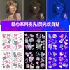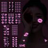 Pegatinas de tatuaje fluorescentes de San Valentín de venta caliente europeas y americanas para hombres y mujeres, pegatinas de tatuaje luminosas temporales para brazo y cara para fiesta de bar