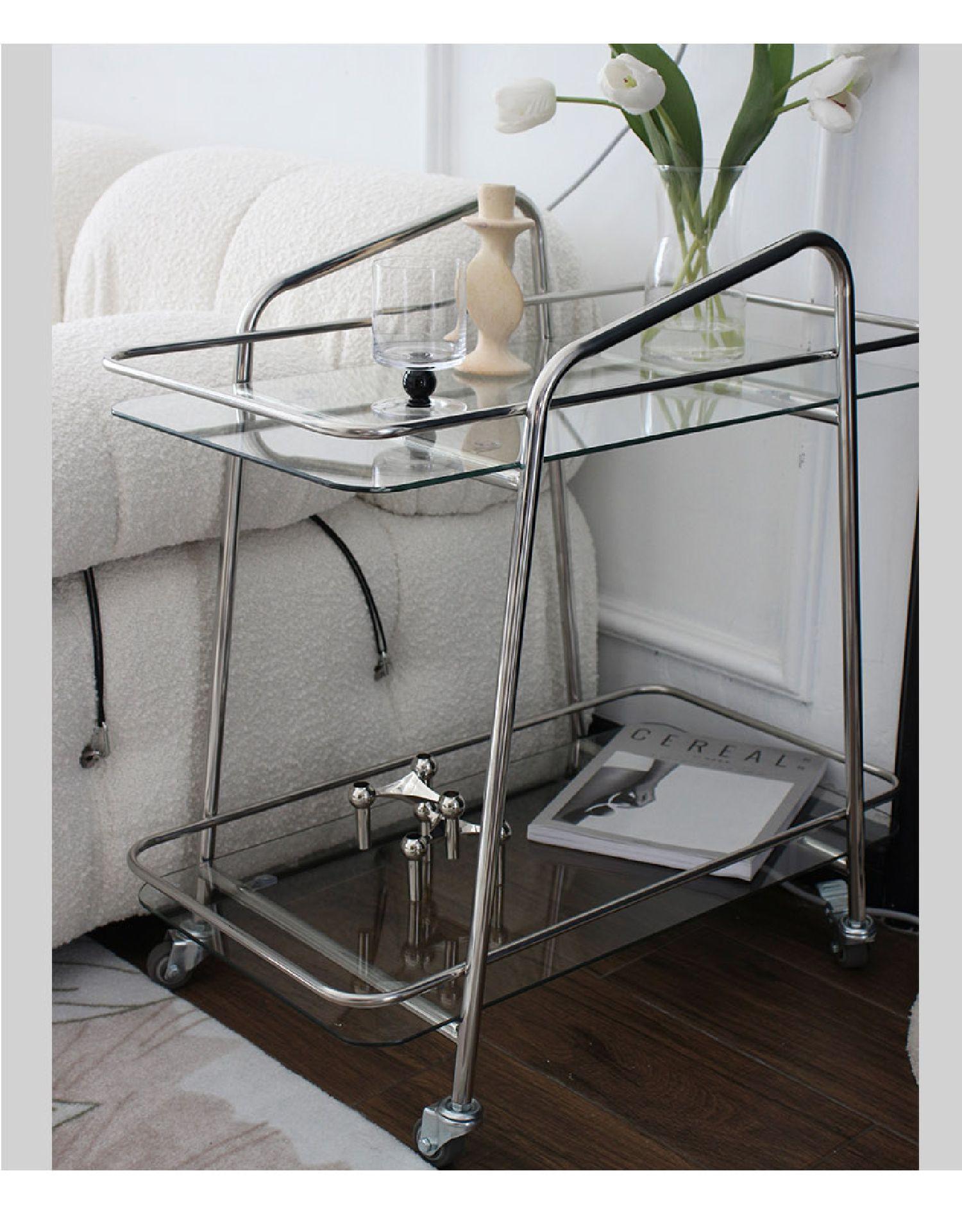 Carro Móvil Sencillo de Acero Inoxidable para el Hogar Mesa de Centro Creativa Carro para Vinos para Sala de Estar Carro para Comedor Comercial de Hotel Carro Mano