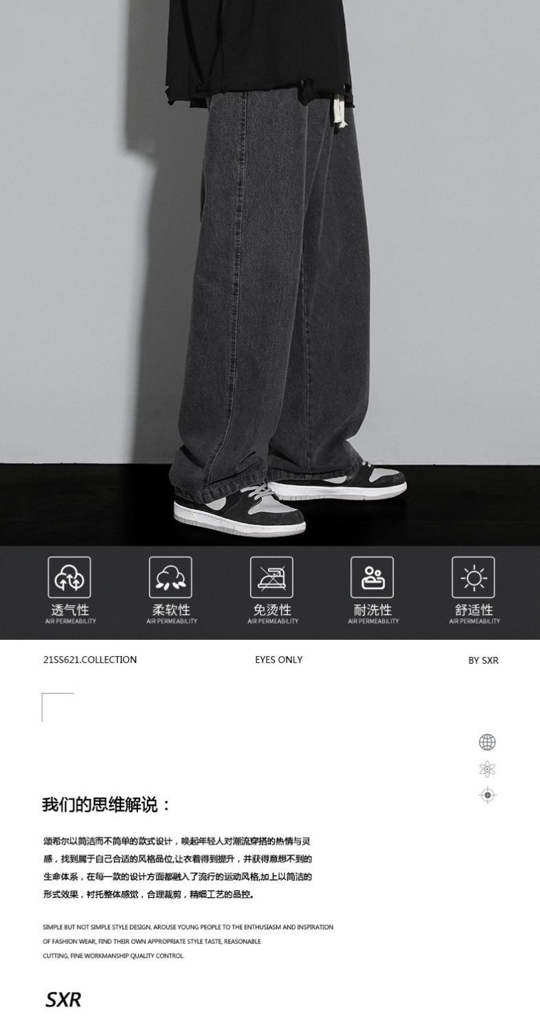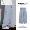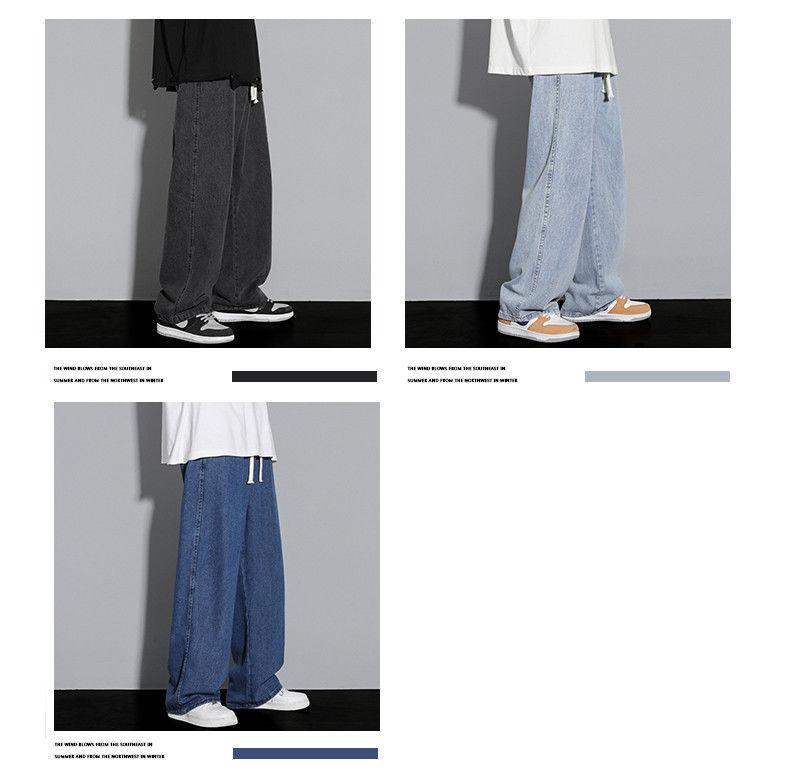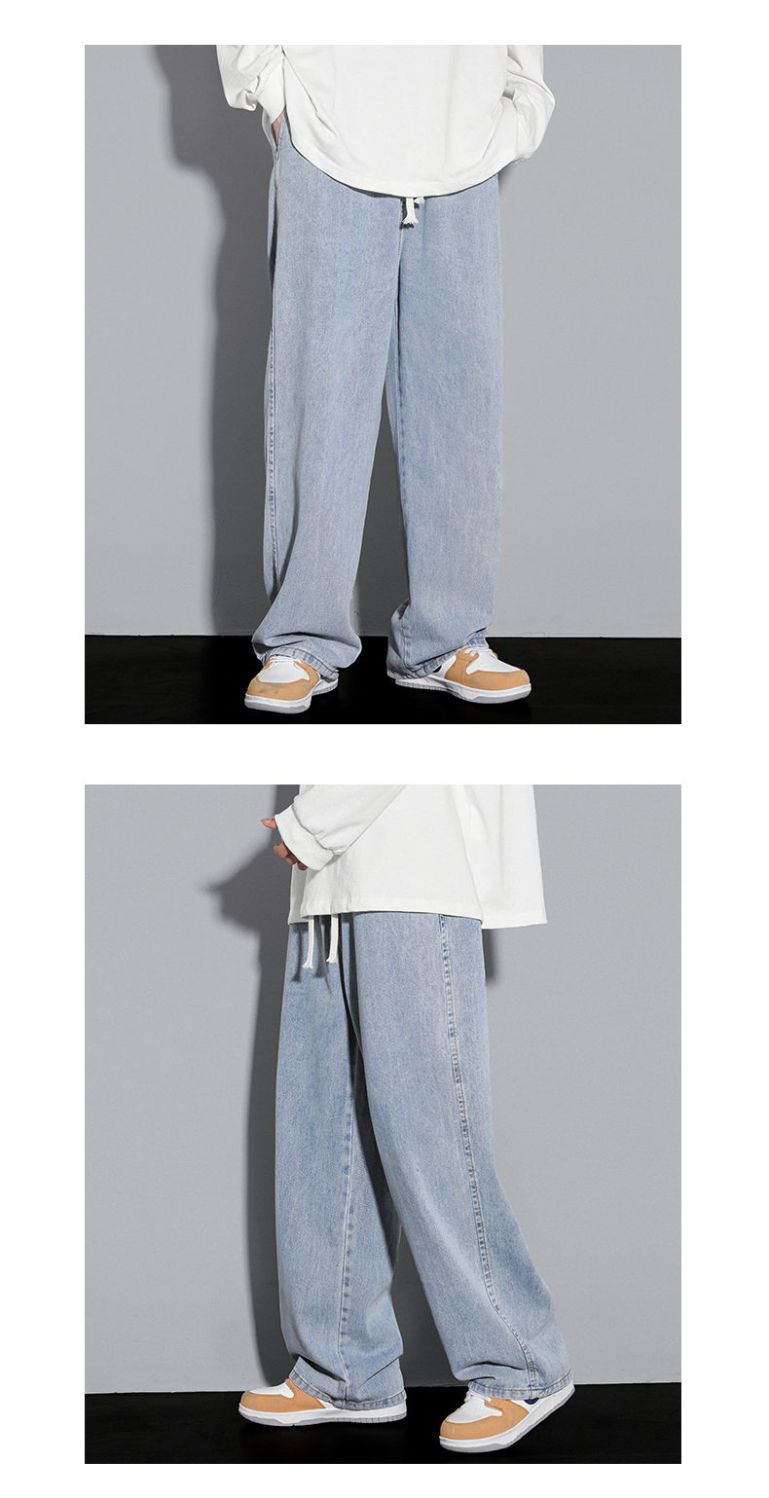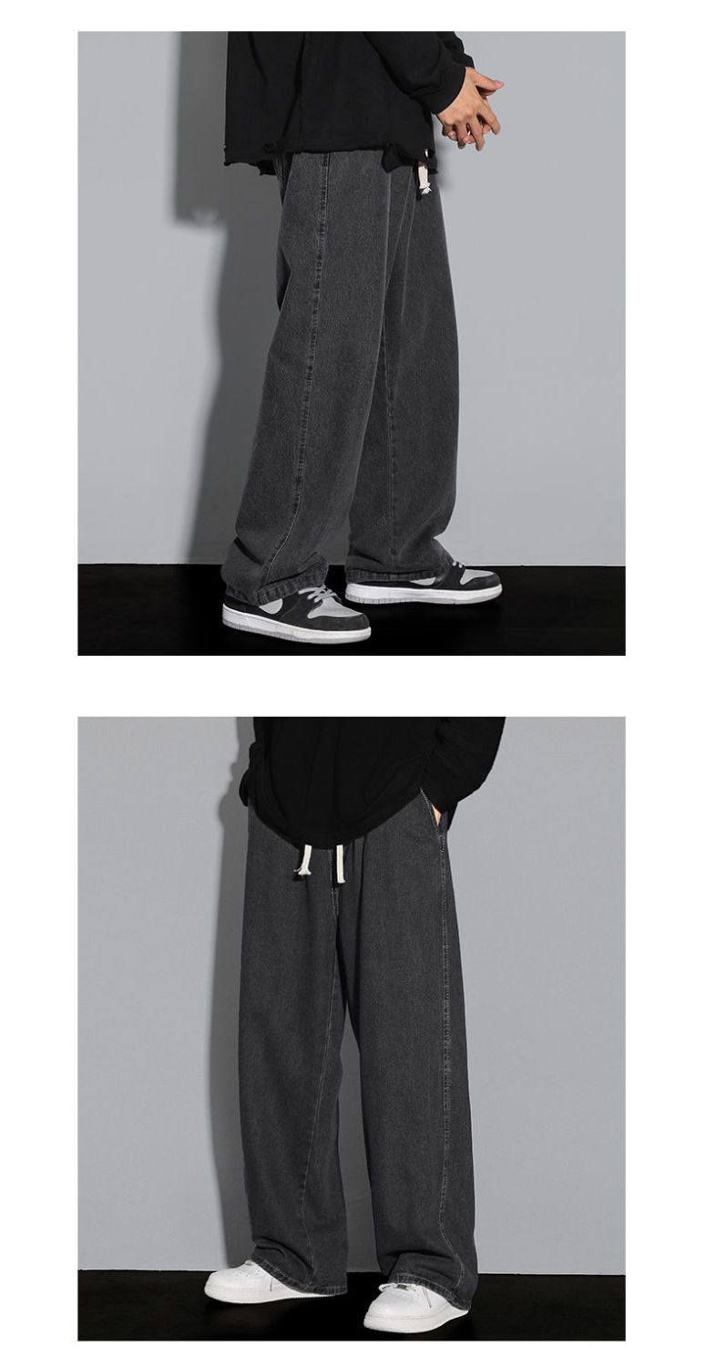 Primavera y Otoño Estilo Americano High Street Marca Trendy Jeans Pantalones Casuales Rectos Holgados para Hombre Estilo Hong Kong Pantalones de Pierna Ancha