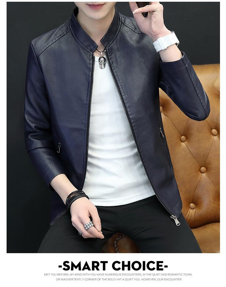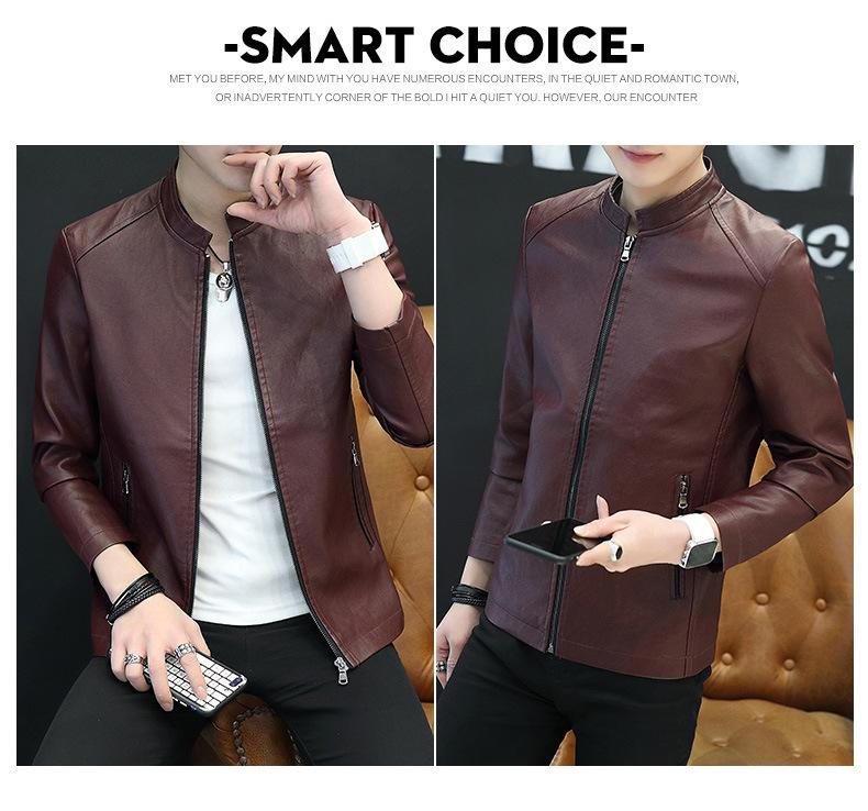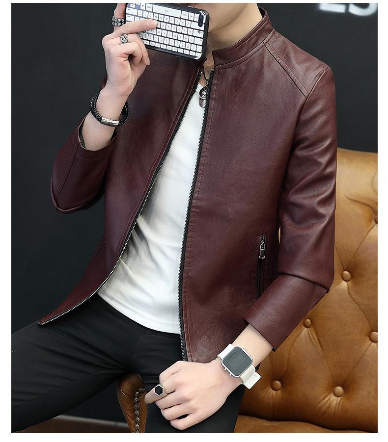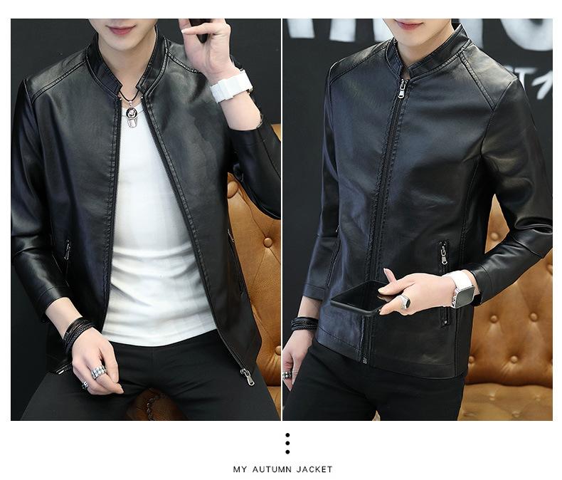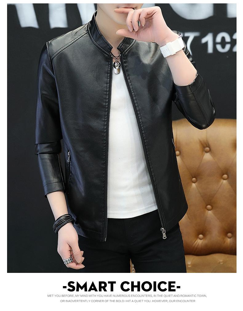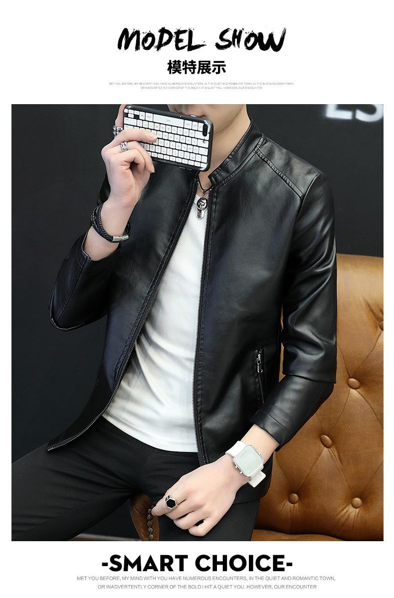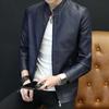 Chaqueta de Cuero para Hombre Otoño Nuevo Estilo Coreano Ajustada Moderna Jóvenes Guapos Casual Cuello Alto Chaqueta de Cuero para Motociclista