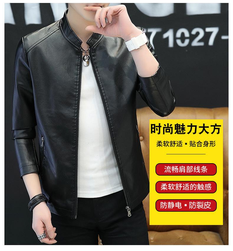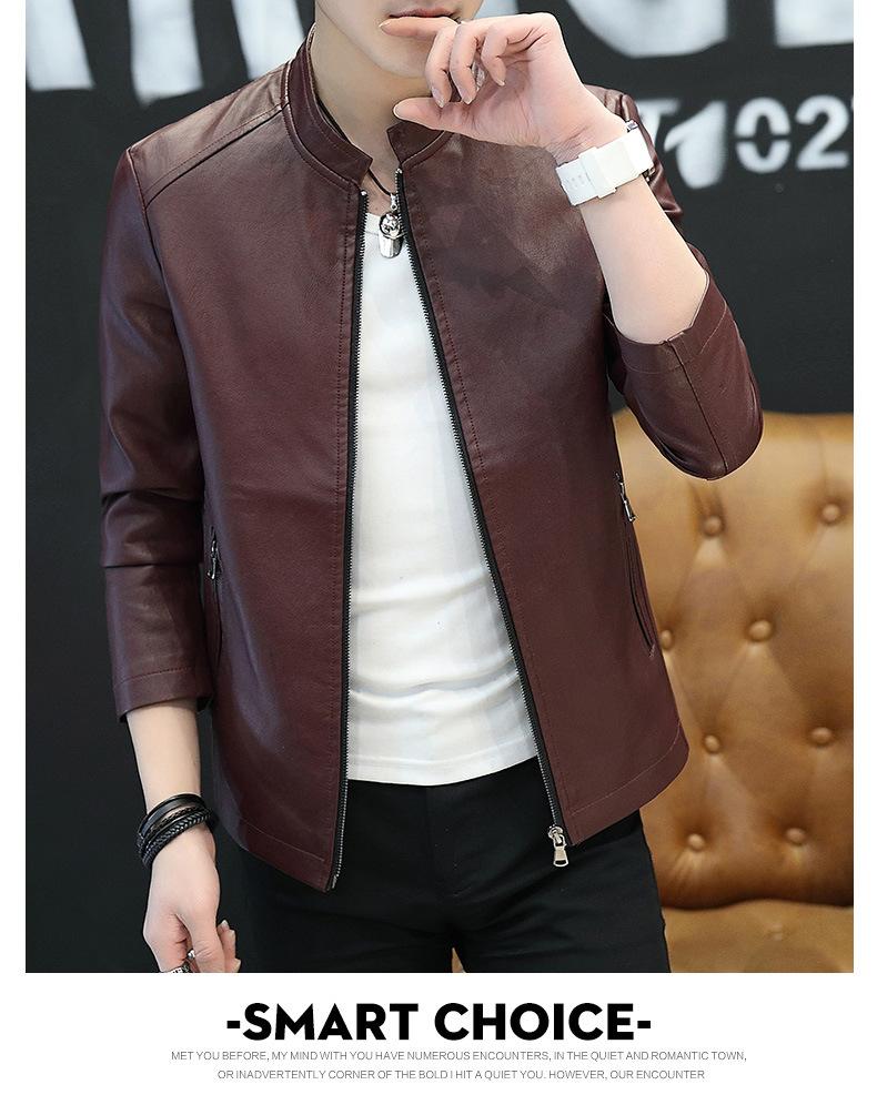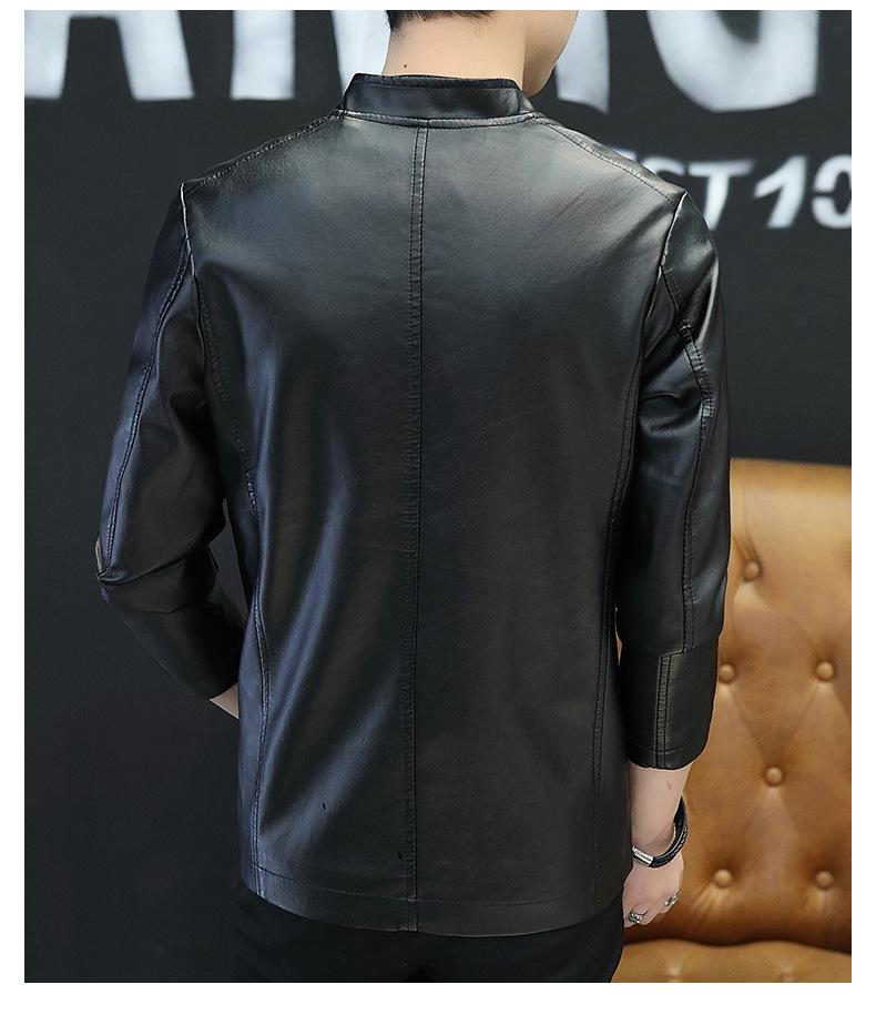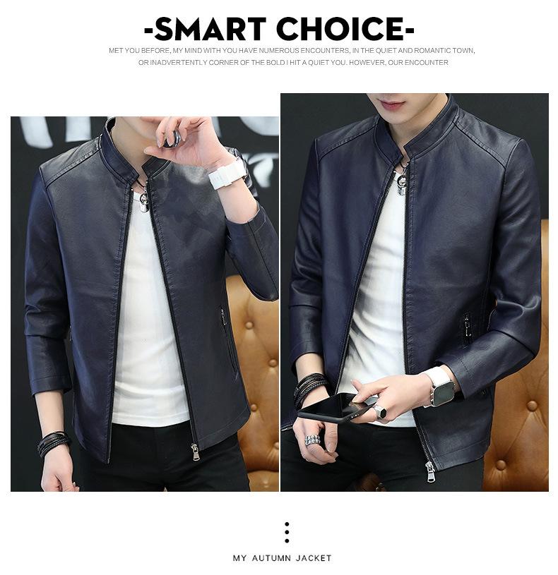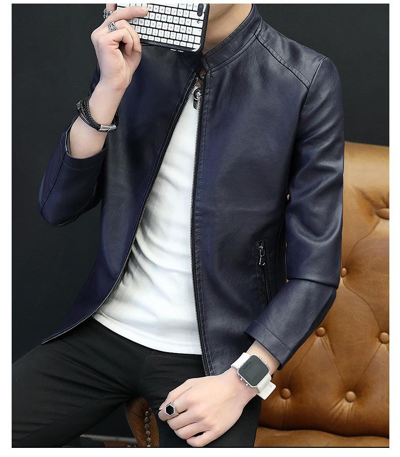 Chaqueta de Cuero para Hombre Otoño Nuevo Estilo Coreano Ajustada Moderna Jóvenes Guapos Casual Cuello Alto Chaqueta de Cuero para Motociclista