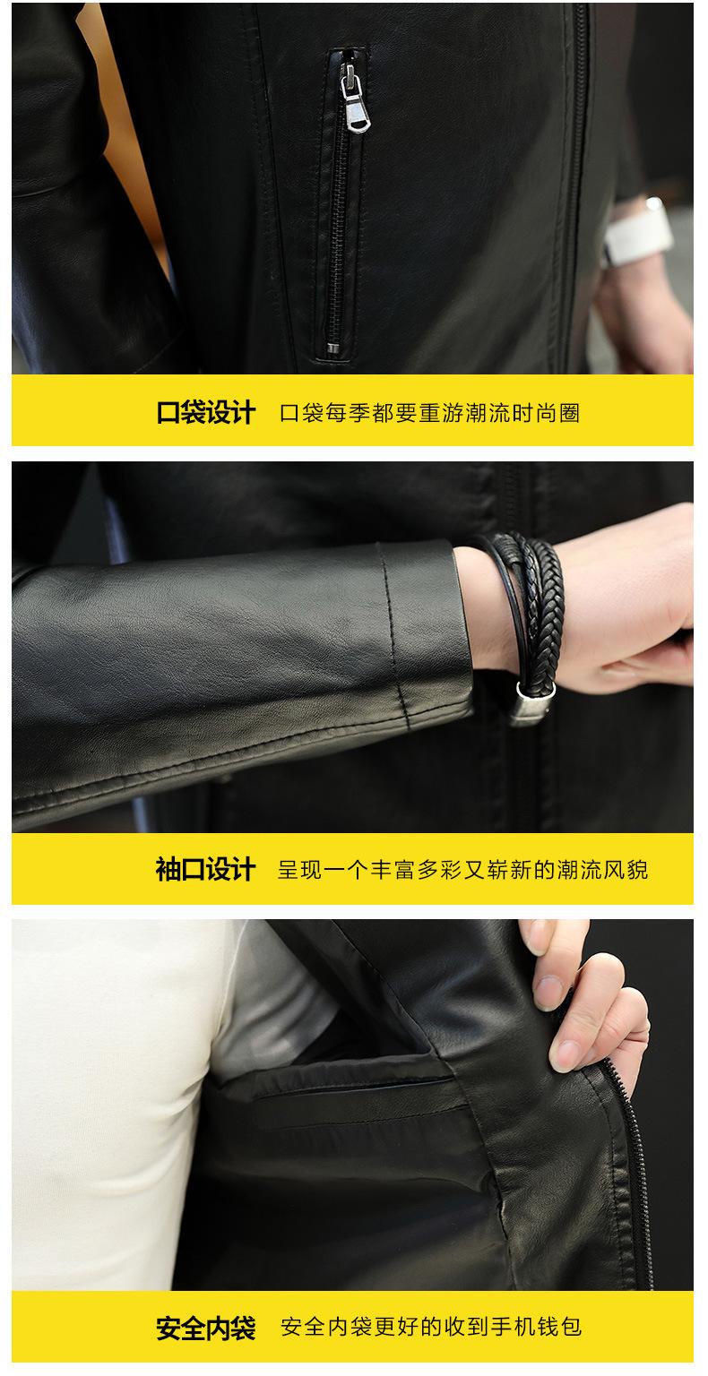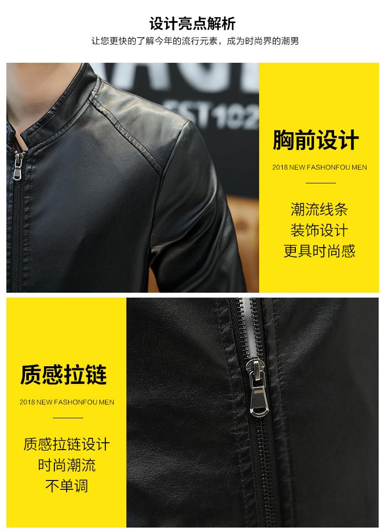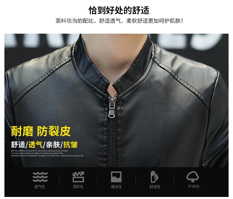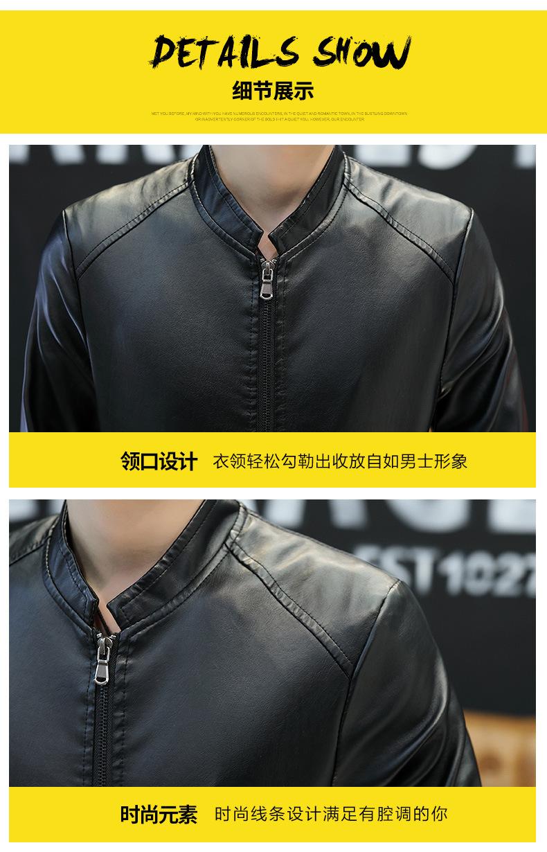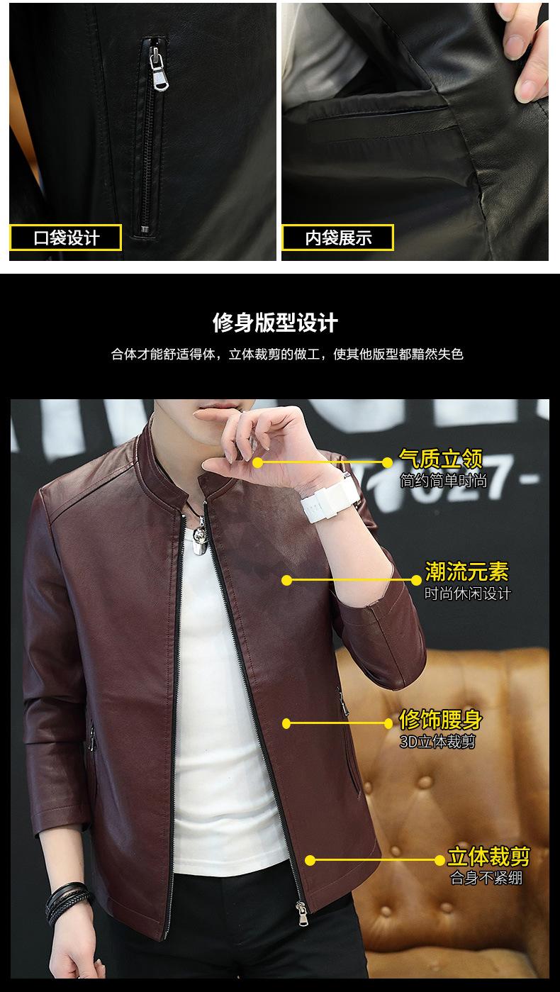 Chaqueta de Cuero para Hombre Otoño Nuevo Estilo Coreano Ajustada Moderna Jóvenes Guapos Casual Cuello Alto Chaqueta de Cuero para Motociclista