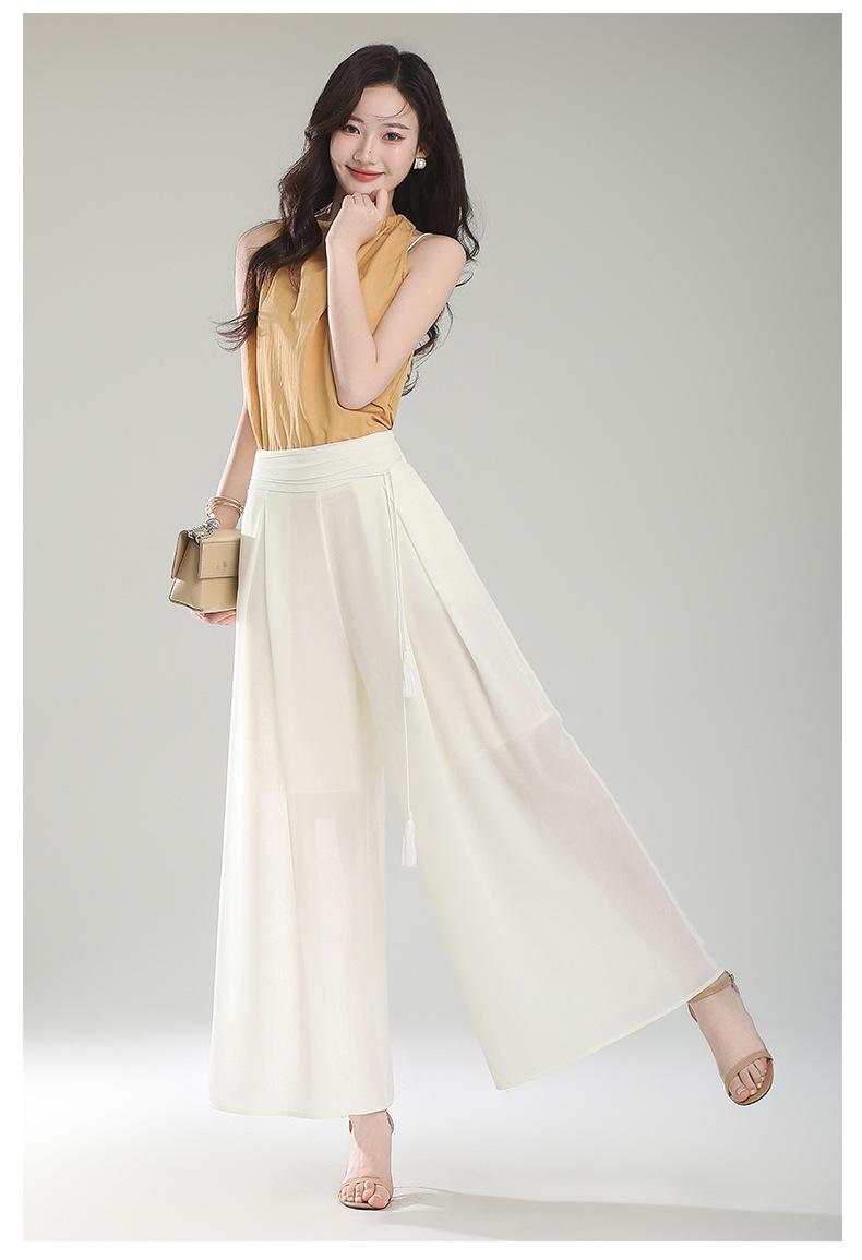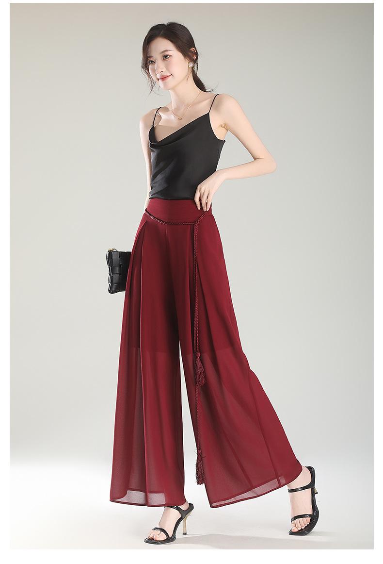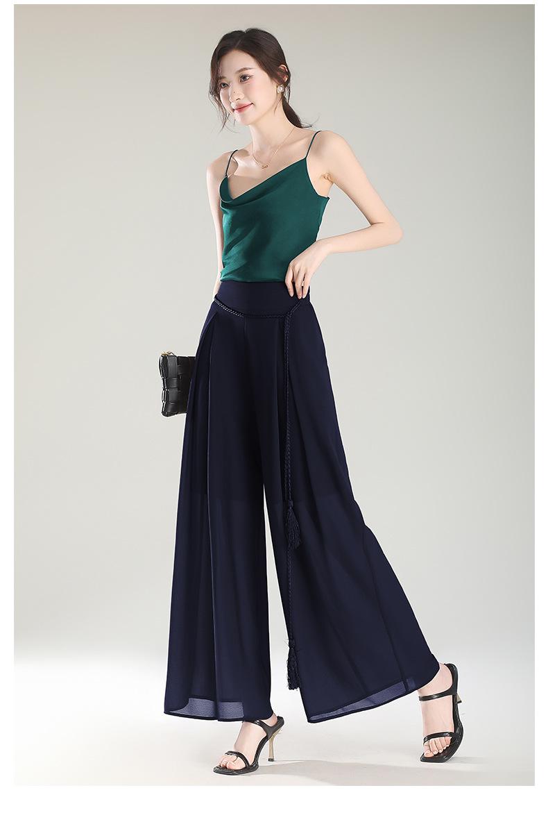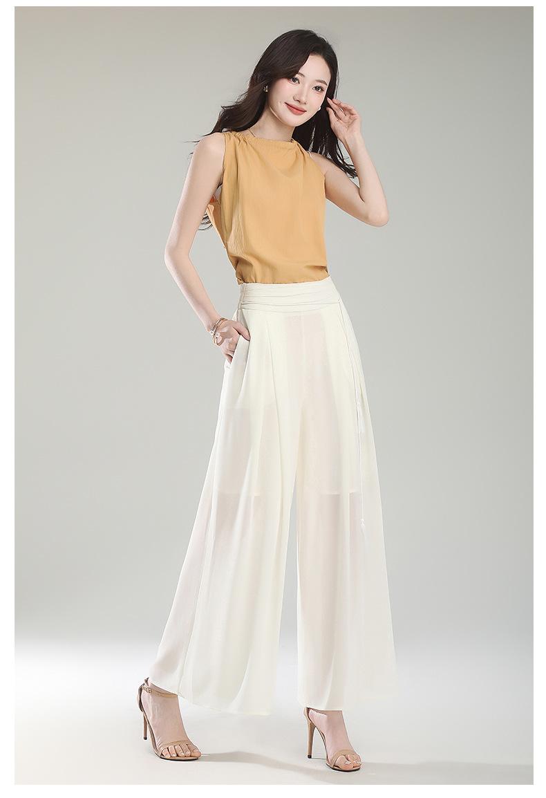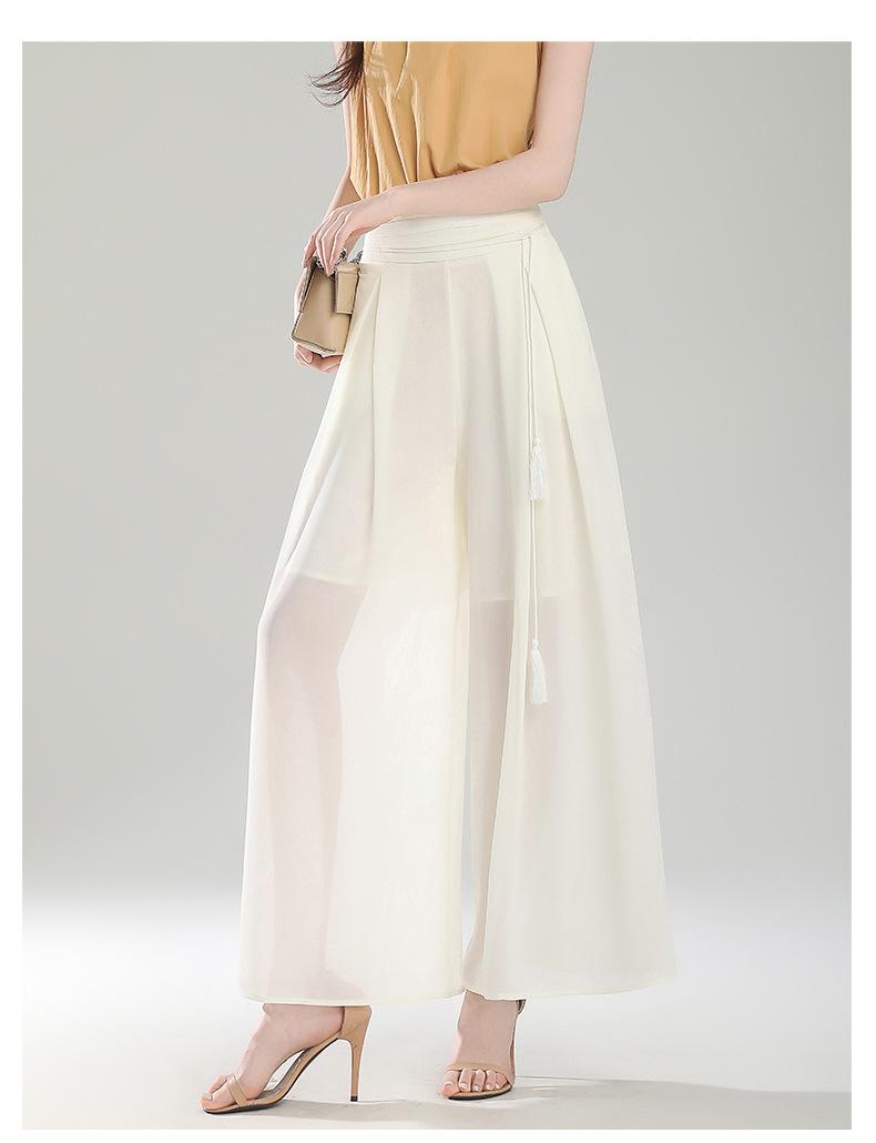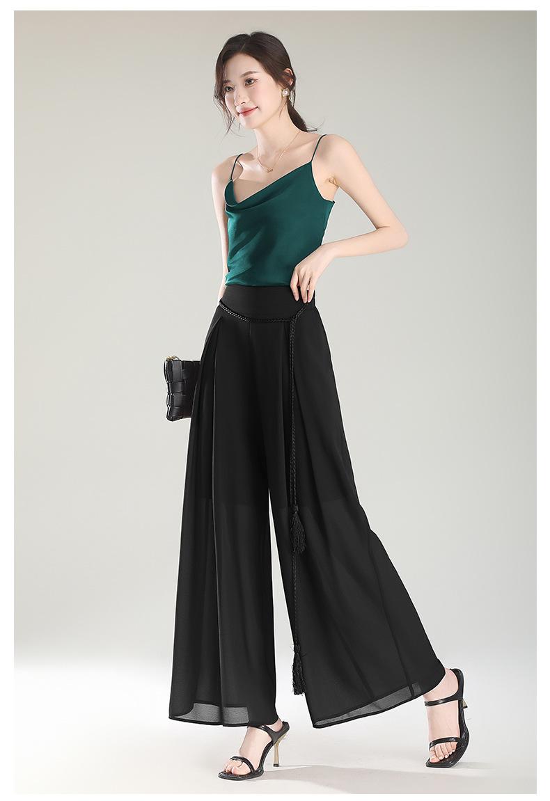 Culottes adelgazantes de cintura alta, pantalones holgados y con abertura, pantalones anchos de gasa para mujer, estilo fino de verano 2025.