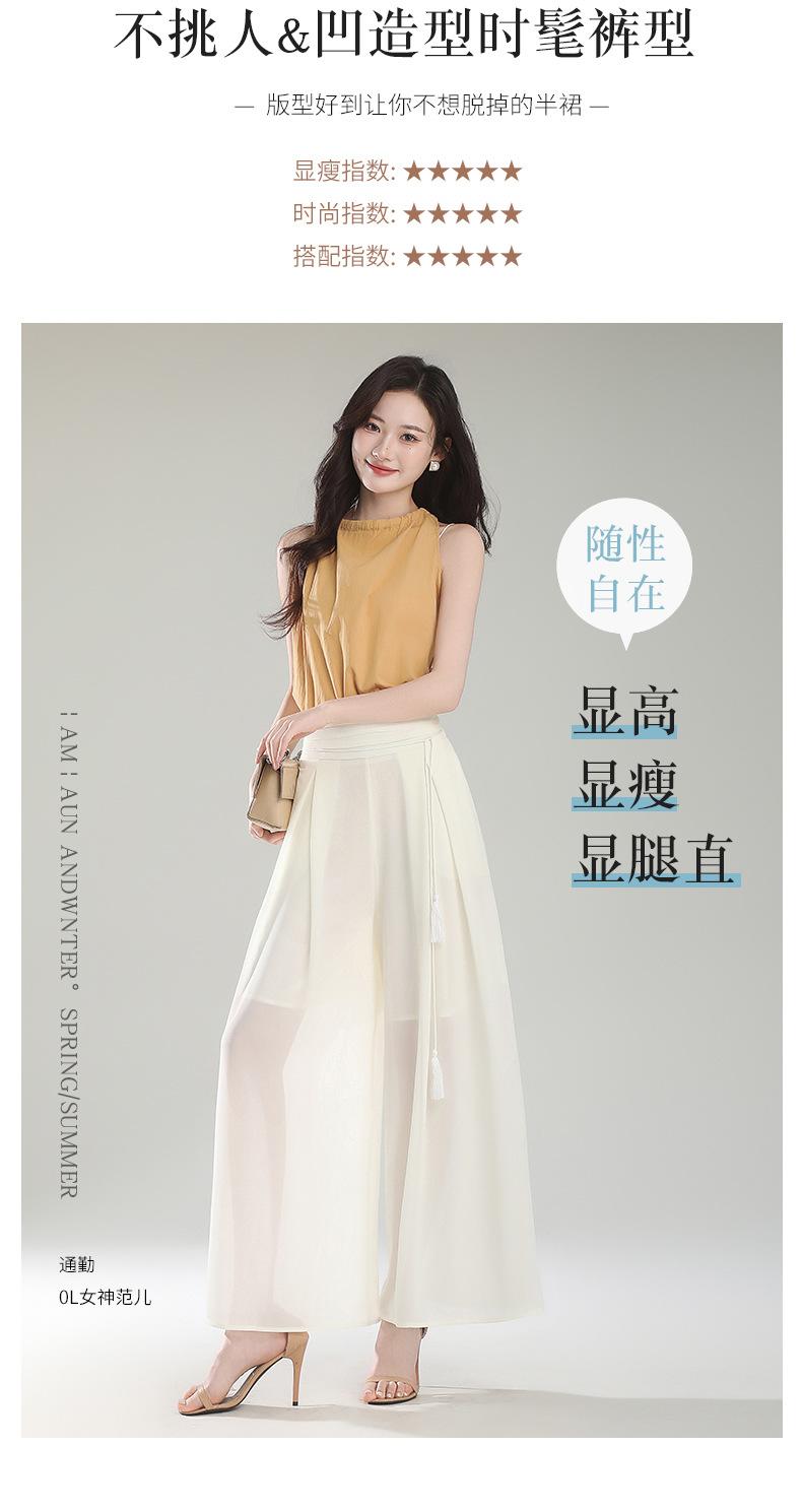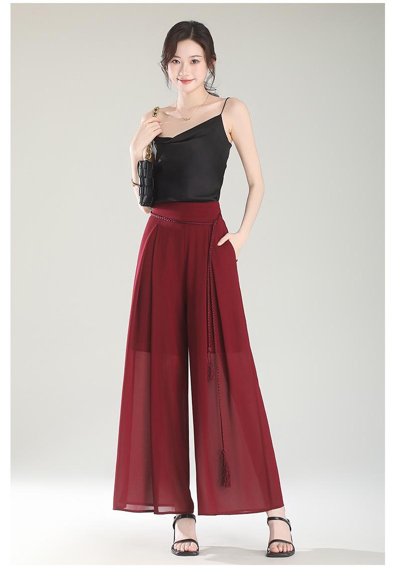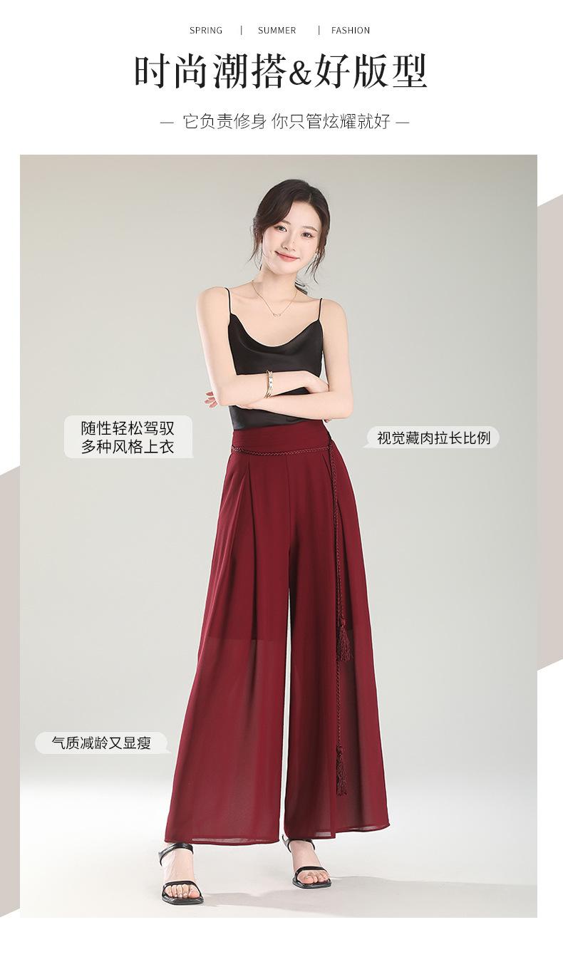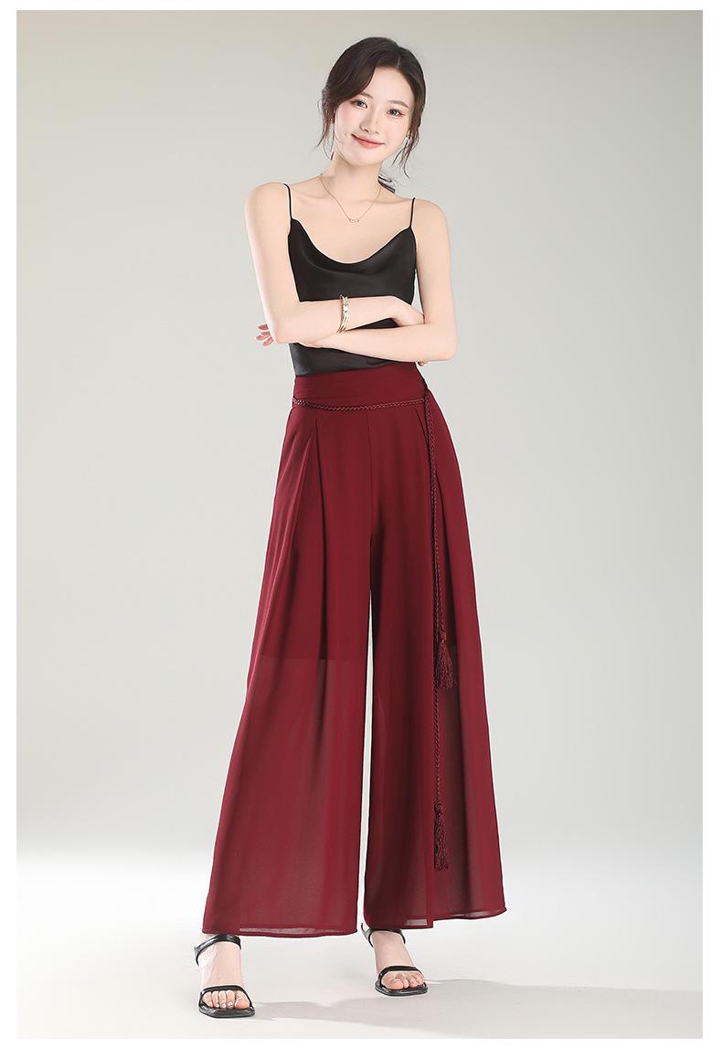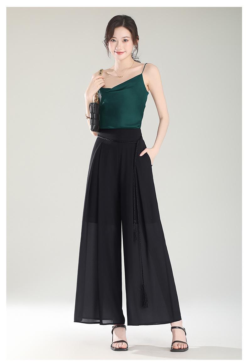 Culottes adelgazantes de cintura alta, pantalones holgados y con abertura, pantalones anchos de gasa para mujer, estilo fino de verano 2025.
