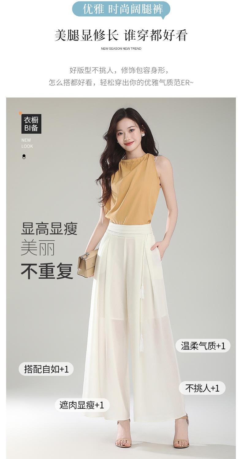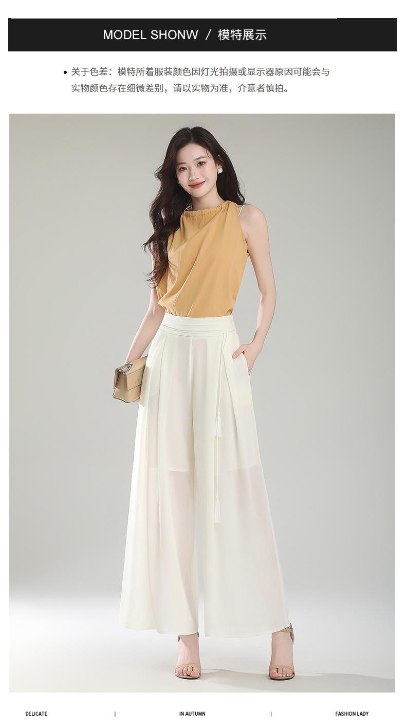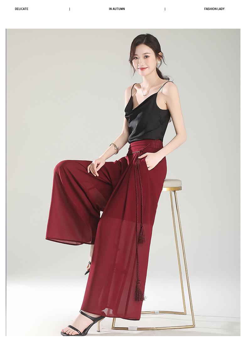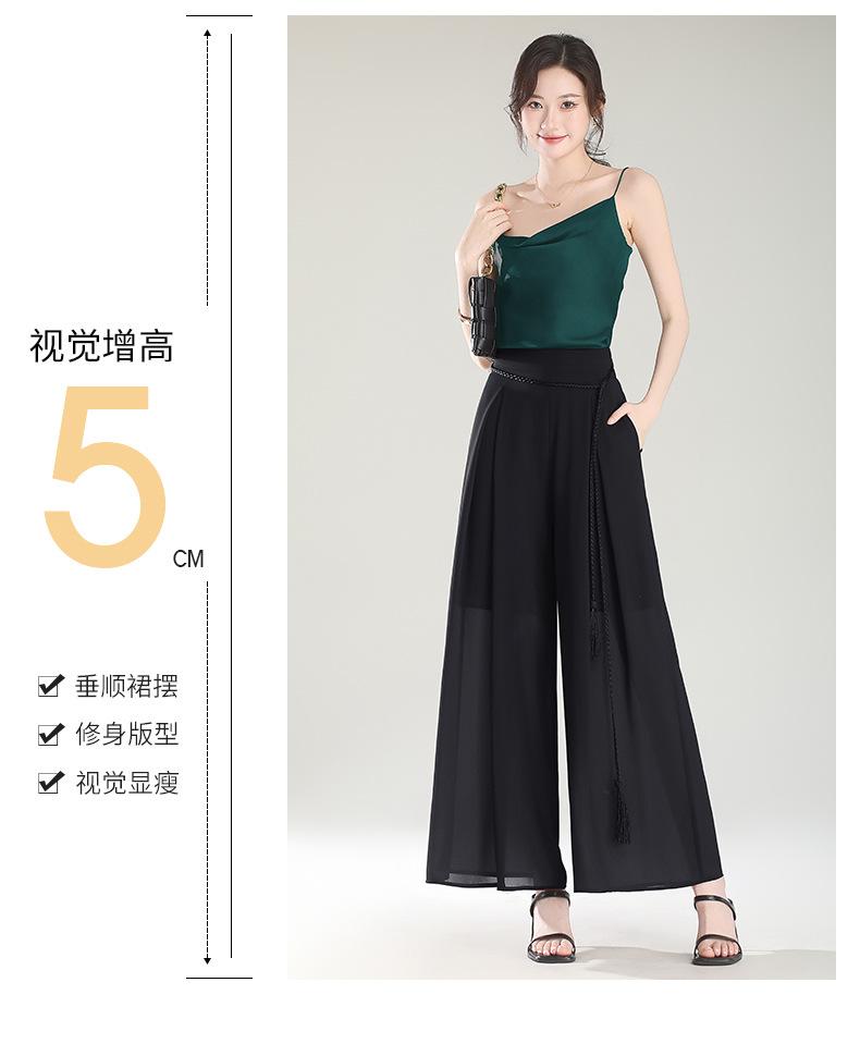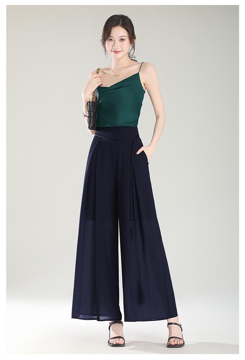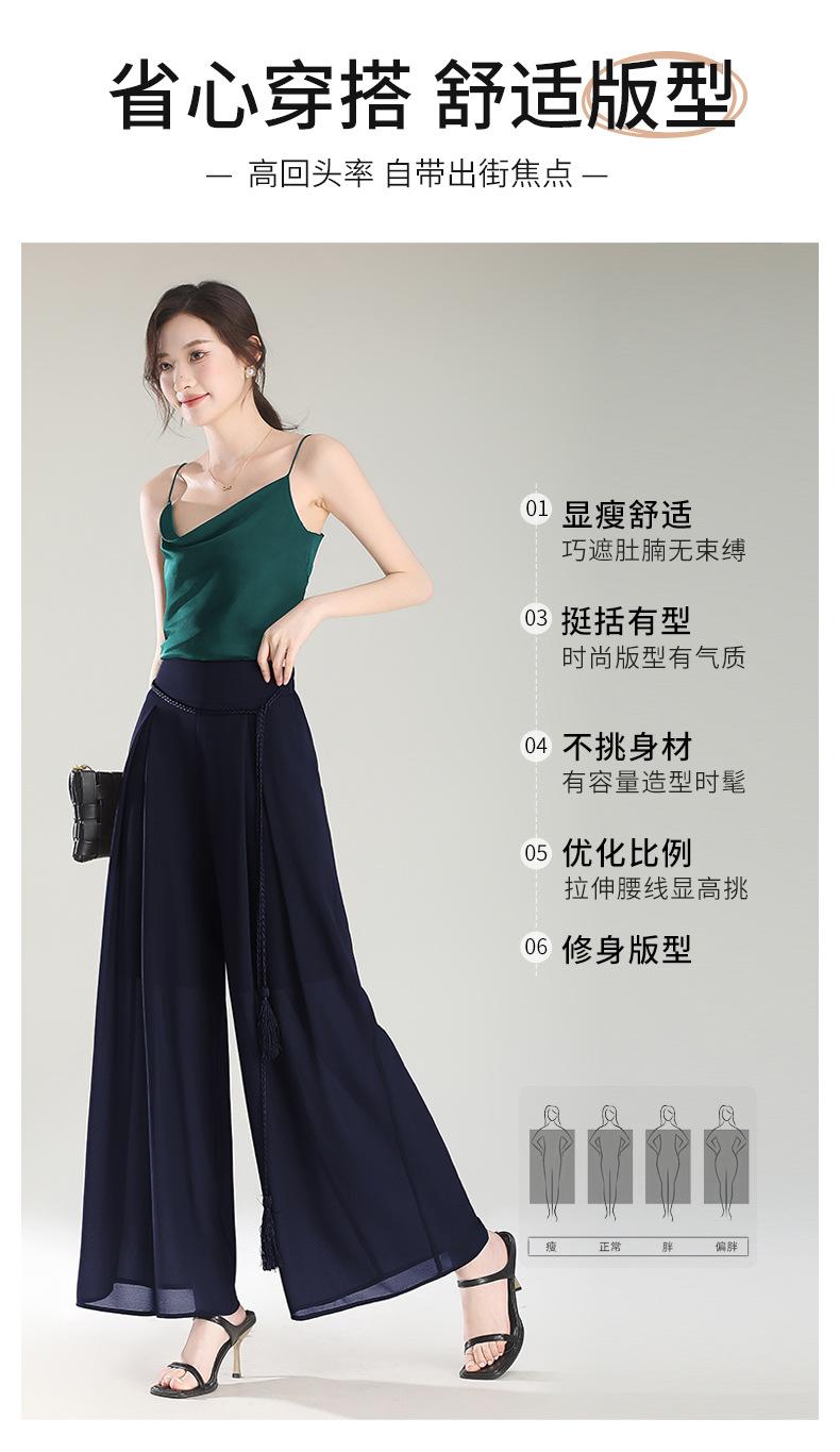 Culottes adelgazantes de cintura alta, pantalones holgados y con abertura, pantalones anchos de gasa para mujer, estilo fino de verano 2025.