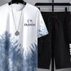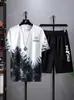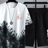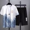 Nuevo traje de seda de hielo degradado de secado rápido, camiseta de manga corta para hombre, pantalones cortos casuales de verano, ropa deportiva de dos piezas para hombre atractivo