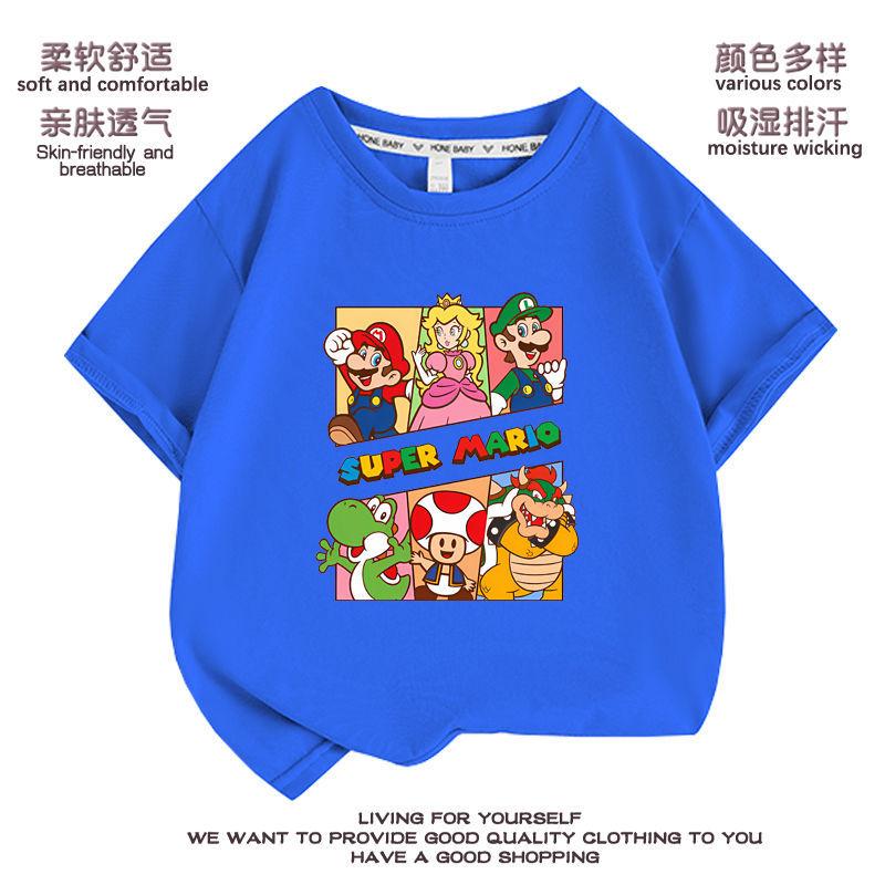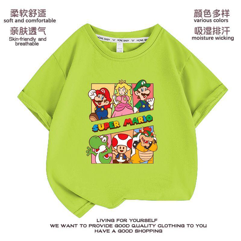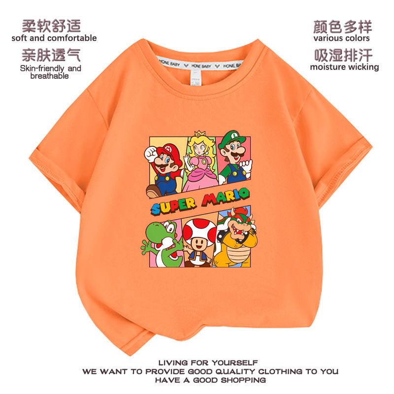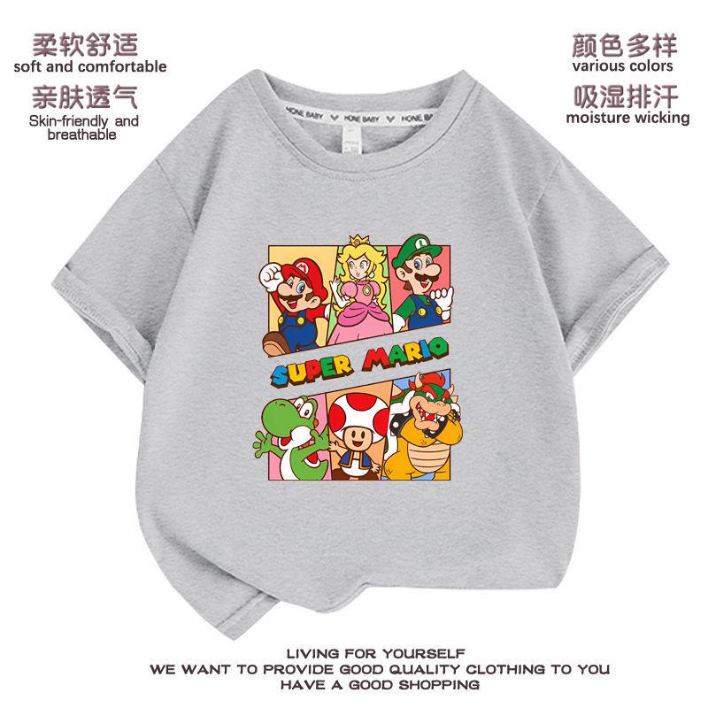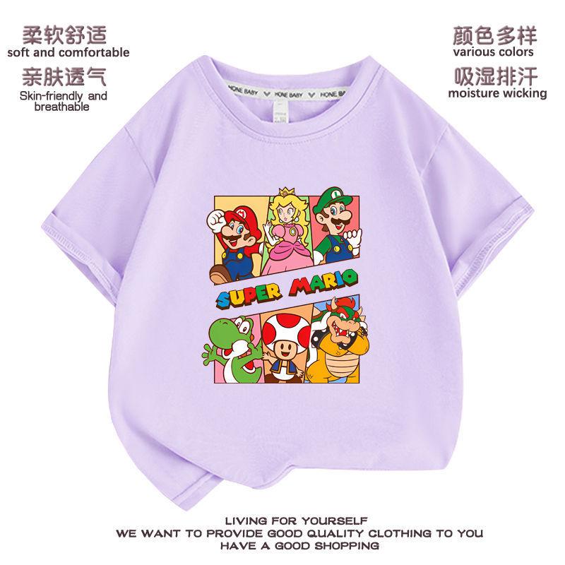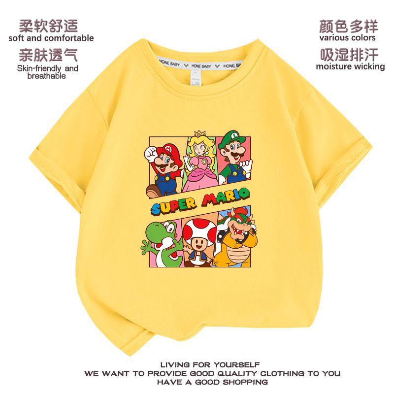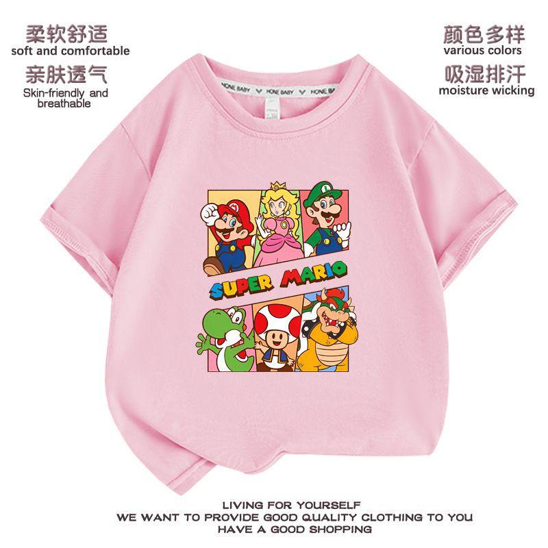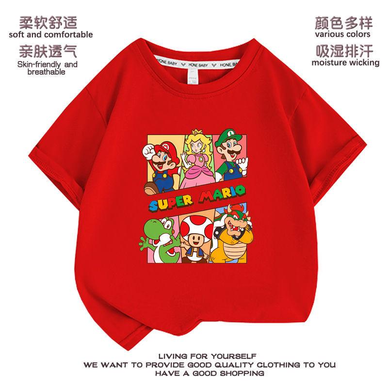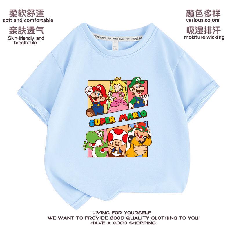 Ropa para niños Niños y Niñas Camiseta de manga corta de Mario Ropa de verano Super Mary para niños Algodón puro Cuello redondo Dibujos animados Camiseta linda