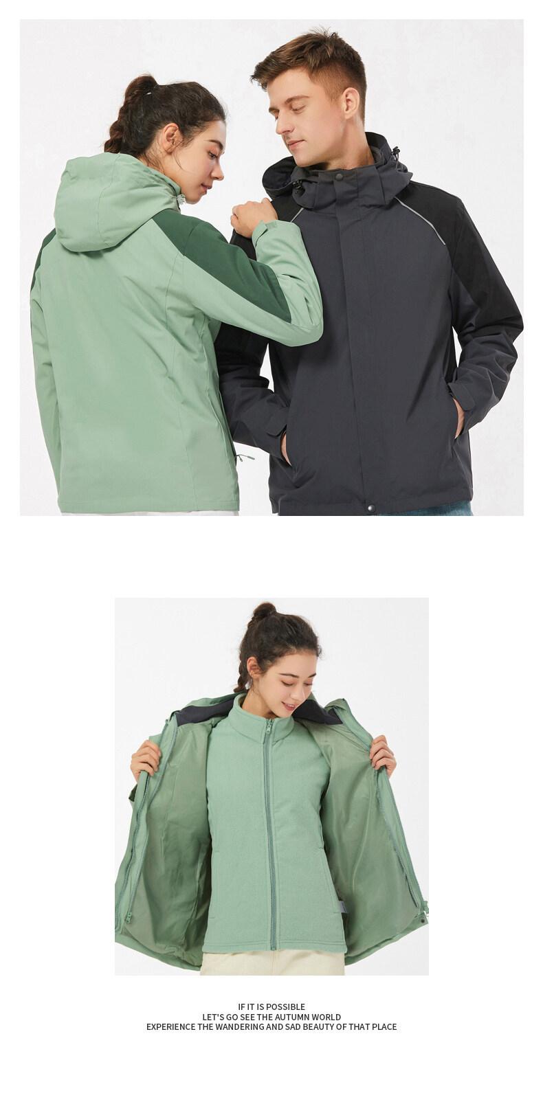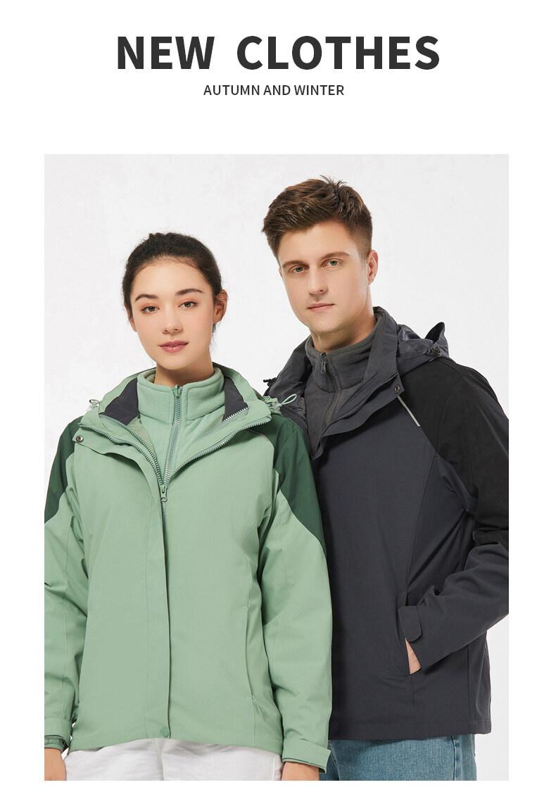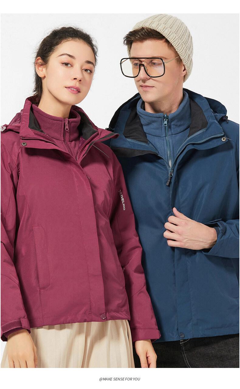 Chaqueta softshell para exteriores para hombre y mujer, chaqueta dos piezas tres en uno, cortavientos, impermeable, traje de montañismo para pareja, cálido